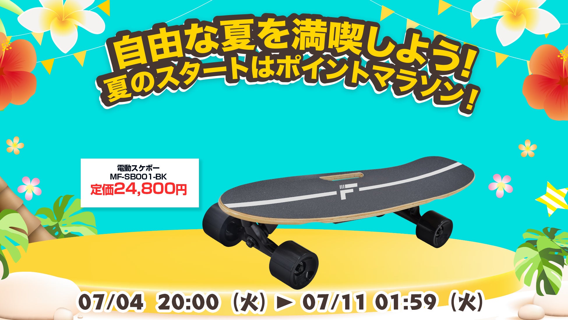 楽天「Show !t」購入後に安心して練習できるアイテムがプレゼントでお得!MEISTER.F電動スケートボードを販売。7月4日(火)20時開始、楽天お買い物マラソンでポイント10倍プレゼント。