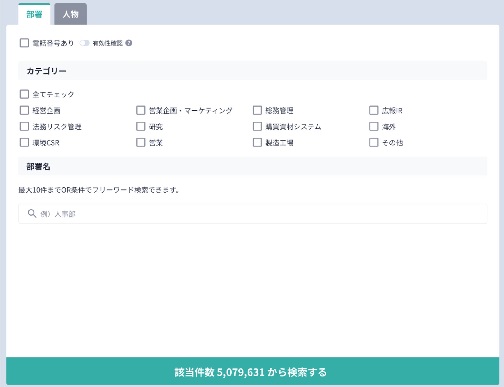 ・営業の歩留まり改善:部署単位の正確な連絡先情報を基にしたアプローチは、商談獲得率や成約率の向上に直接的に寄与します。