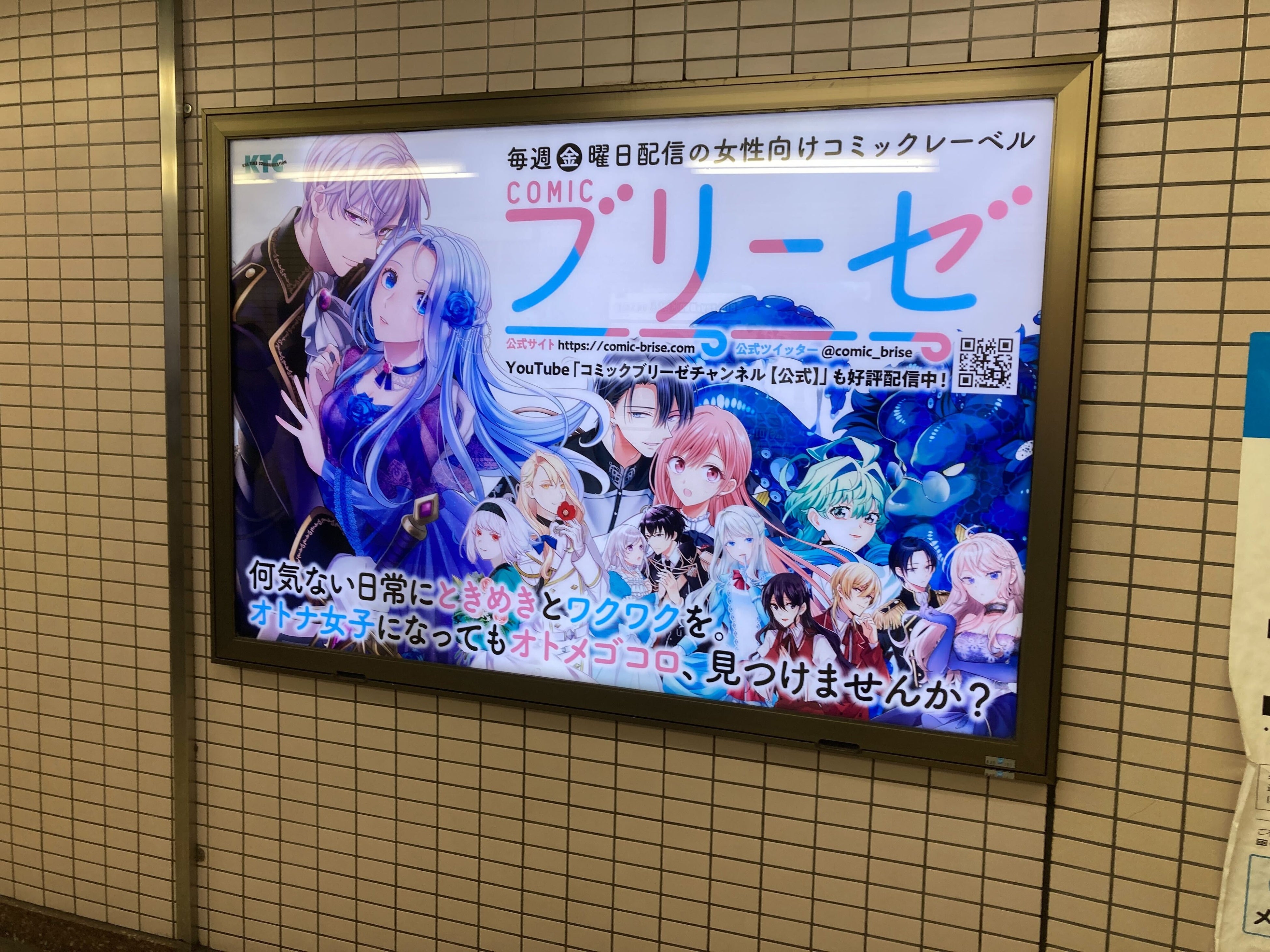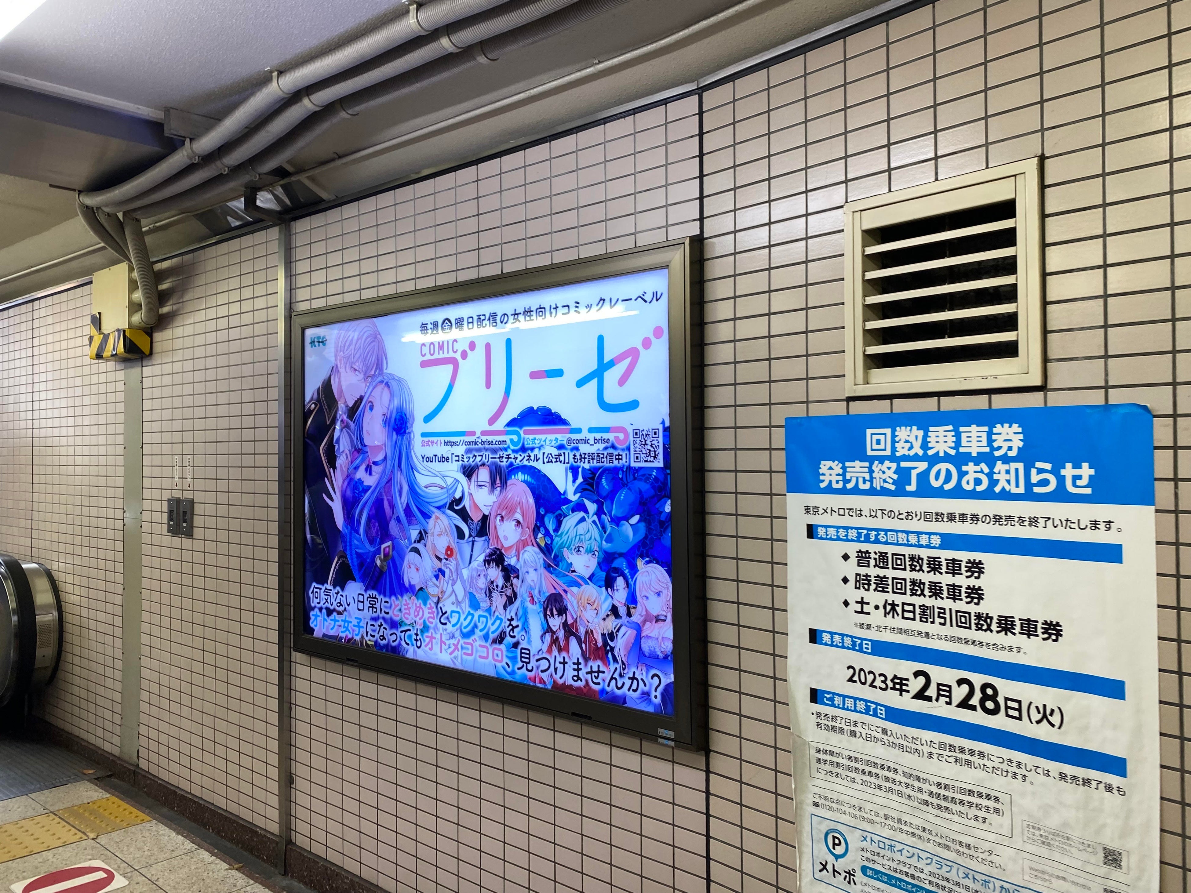 キルタイムコミュニケーション(東京都中央区)は、東京メトロ丸ノ内線池袋駅コンコースにある、オトナ女子向けWEBコミックレーベル「コミックブリーゼ」の電照看板のデザインを新しいものに変更いたしました。