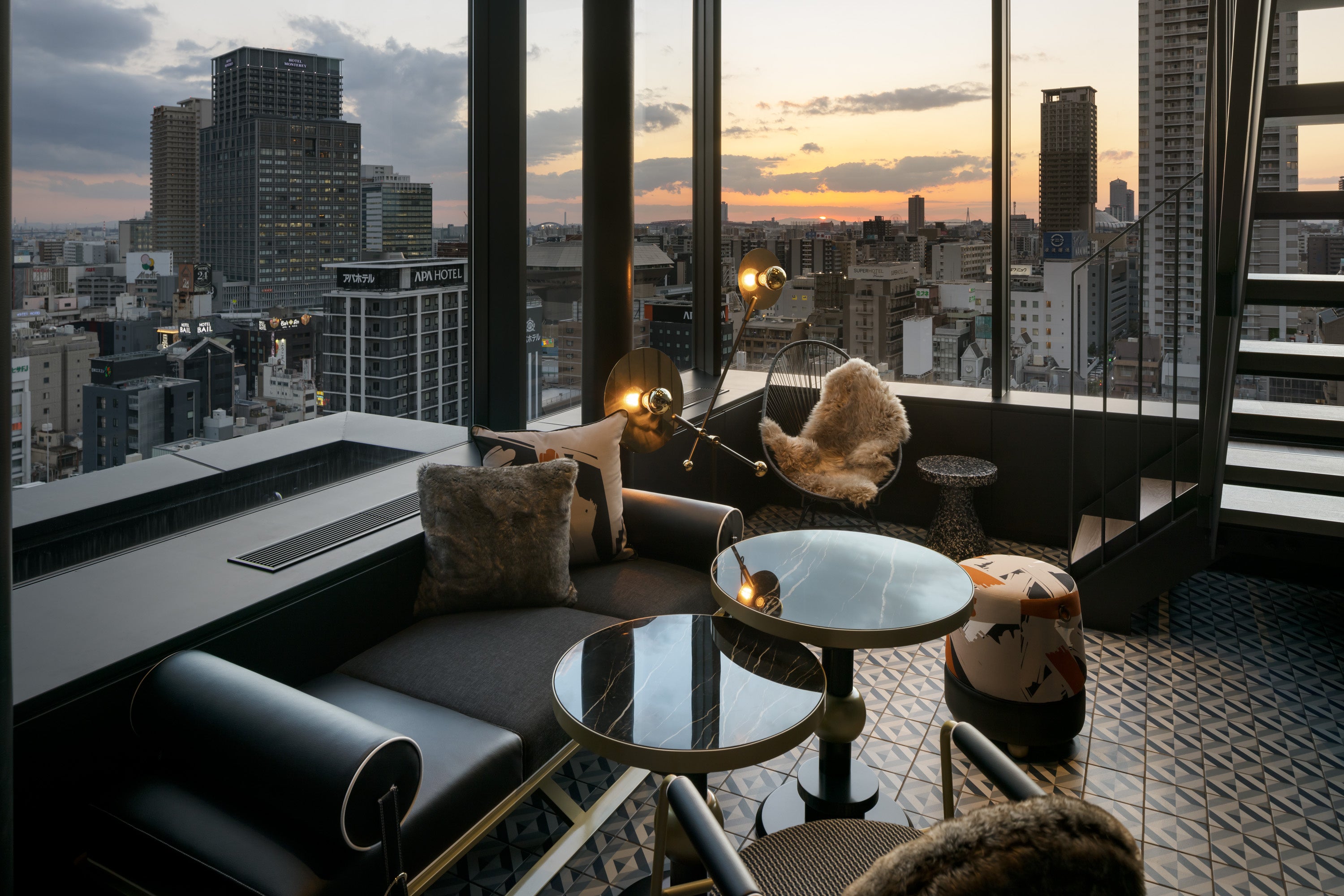 難波の街並みを一望する3室だけの客室。テラスまたは2面ガラス張りからの眺望とゆったりとした空間で特別な滞在体験をお楽しみいただけます。