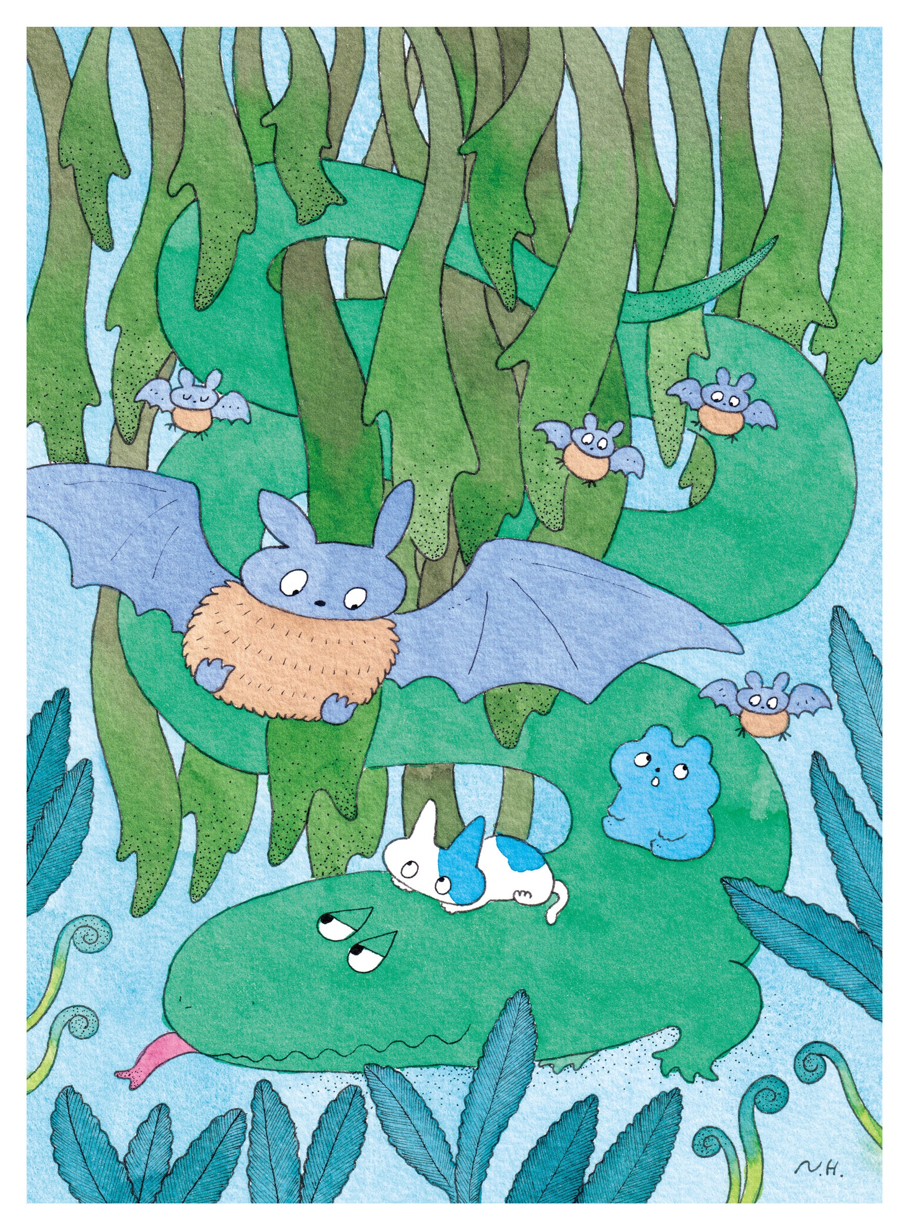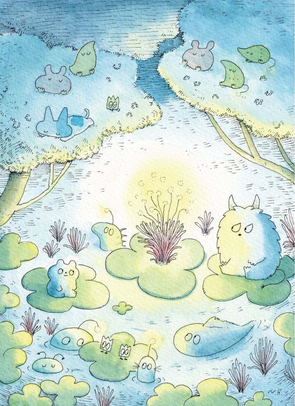 2023年カレンダーのために描き下ろした新作原画とグッズを展示販売いたします。多様な植物が生い茂る空想の森「たにくの森」で不思議な生き物たちが楽しく過ごす日々を是非覗いてみてください。