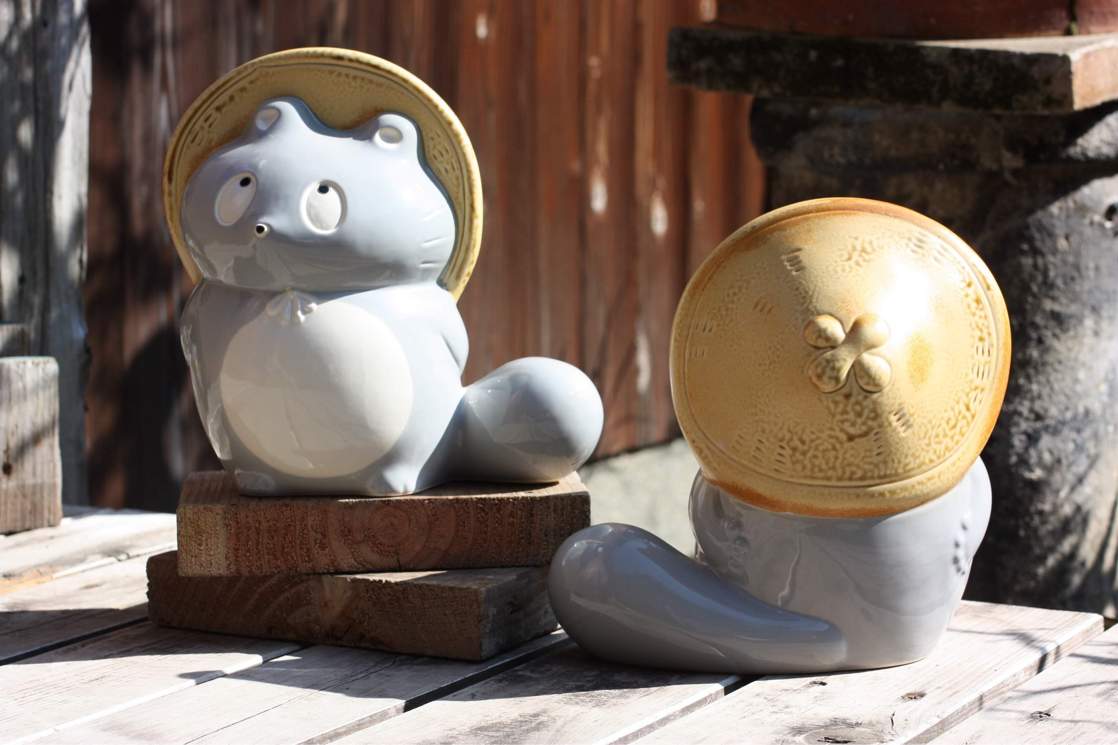 ヒダカナオトのキャラクター「ぼんやり子だぬき」の陶器の置物です。