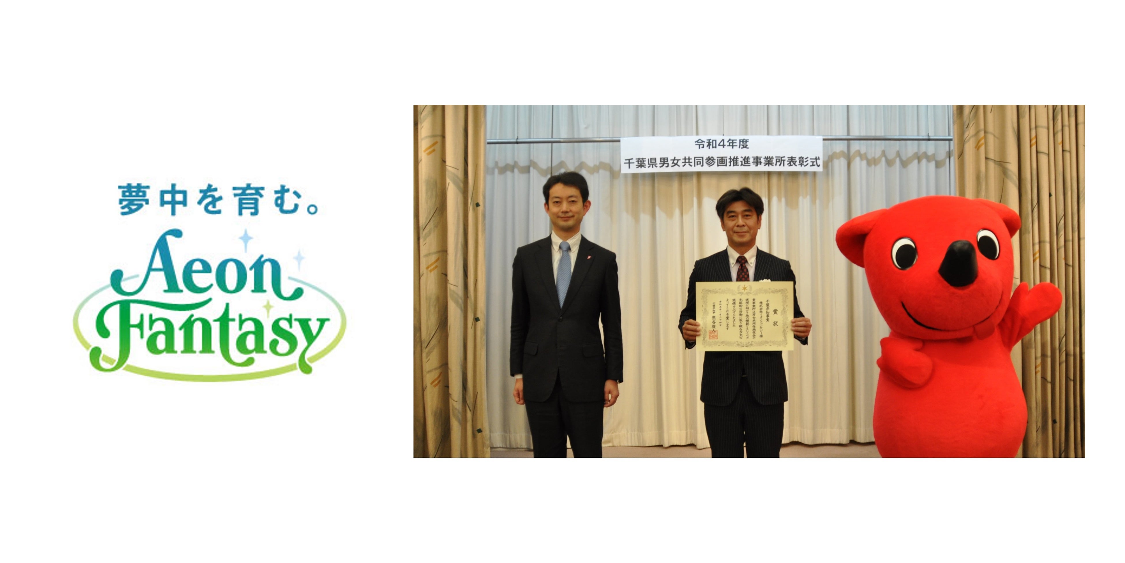 株式会社イオンファンタジー(本社:千葉県千葉市、代表取締役社長:藤原徳也、以下、当社)は、1月24日(火)千葉県による「令和4年度千葉県男女共同参画推進事業所表彰」において、「千葉県知事賞」を受賞いたしました。