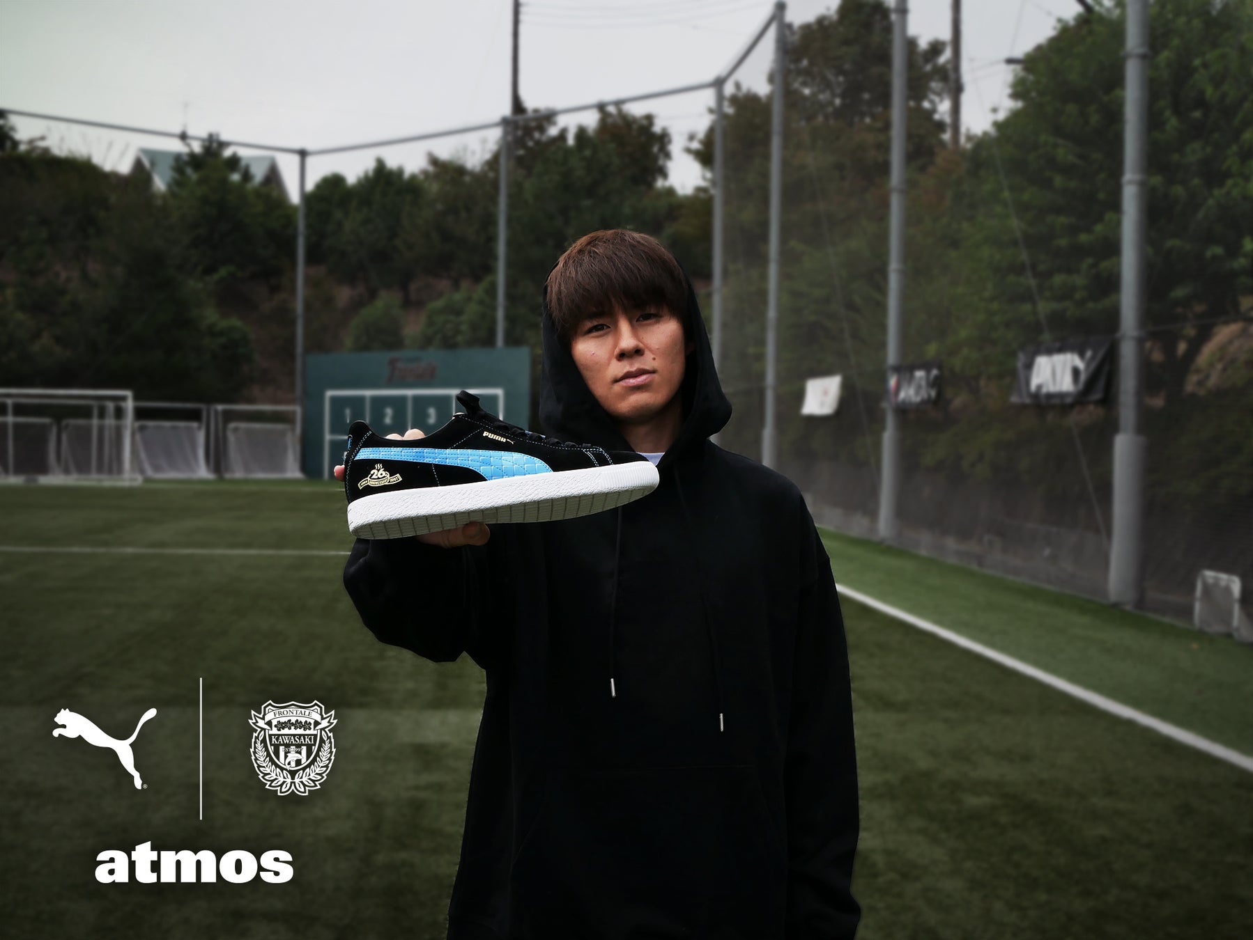 川崎フロンターレ26周年を記念し、初のトリプルコラボによる「PUMA SUEDE VTG MIJ FRONTALE atmos」を発売。