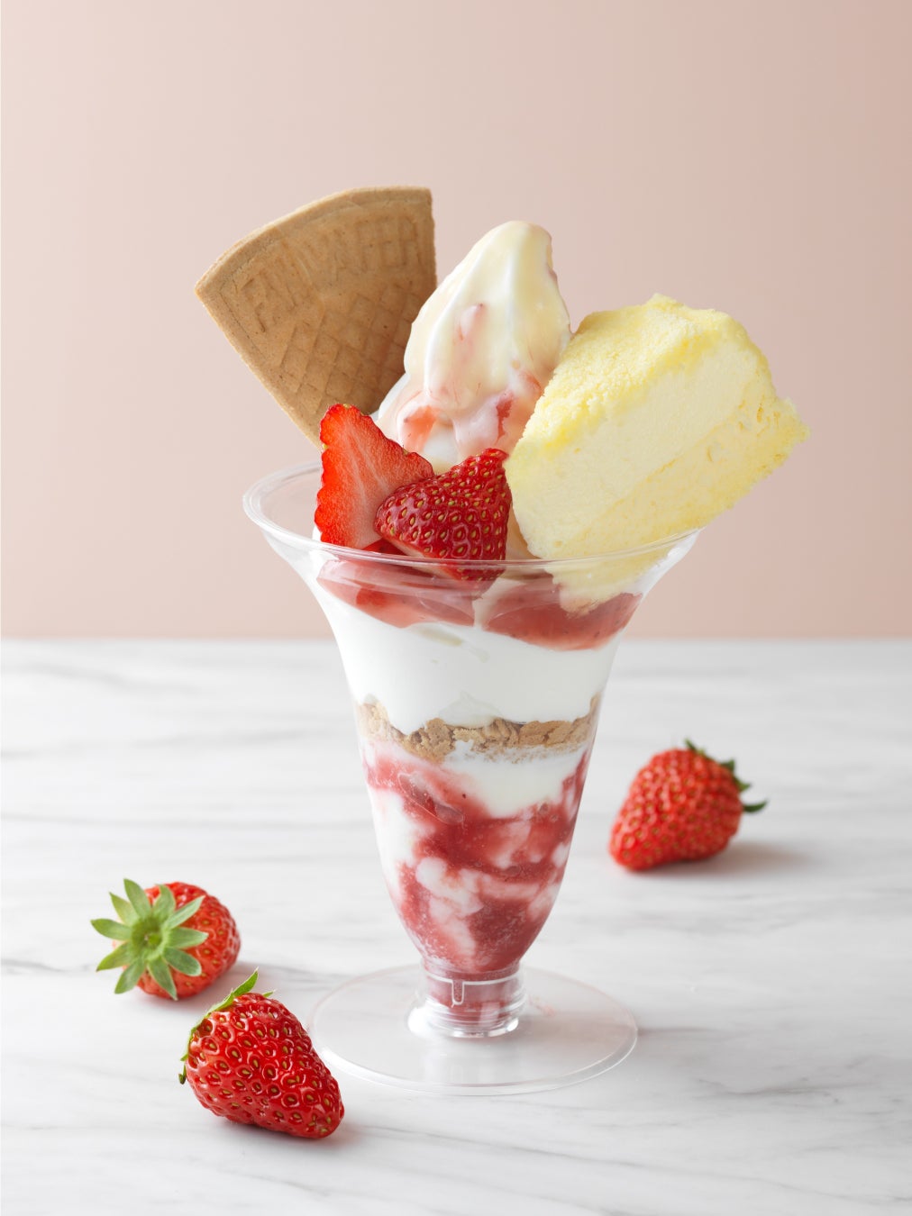 ミルキーで華やかないちごとミルクのパフェ。