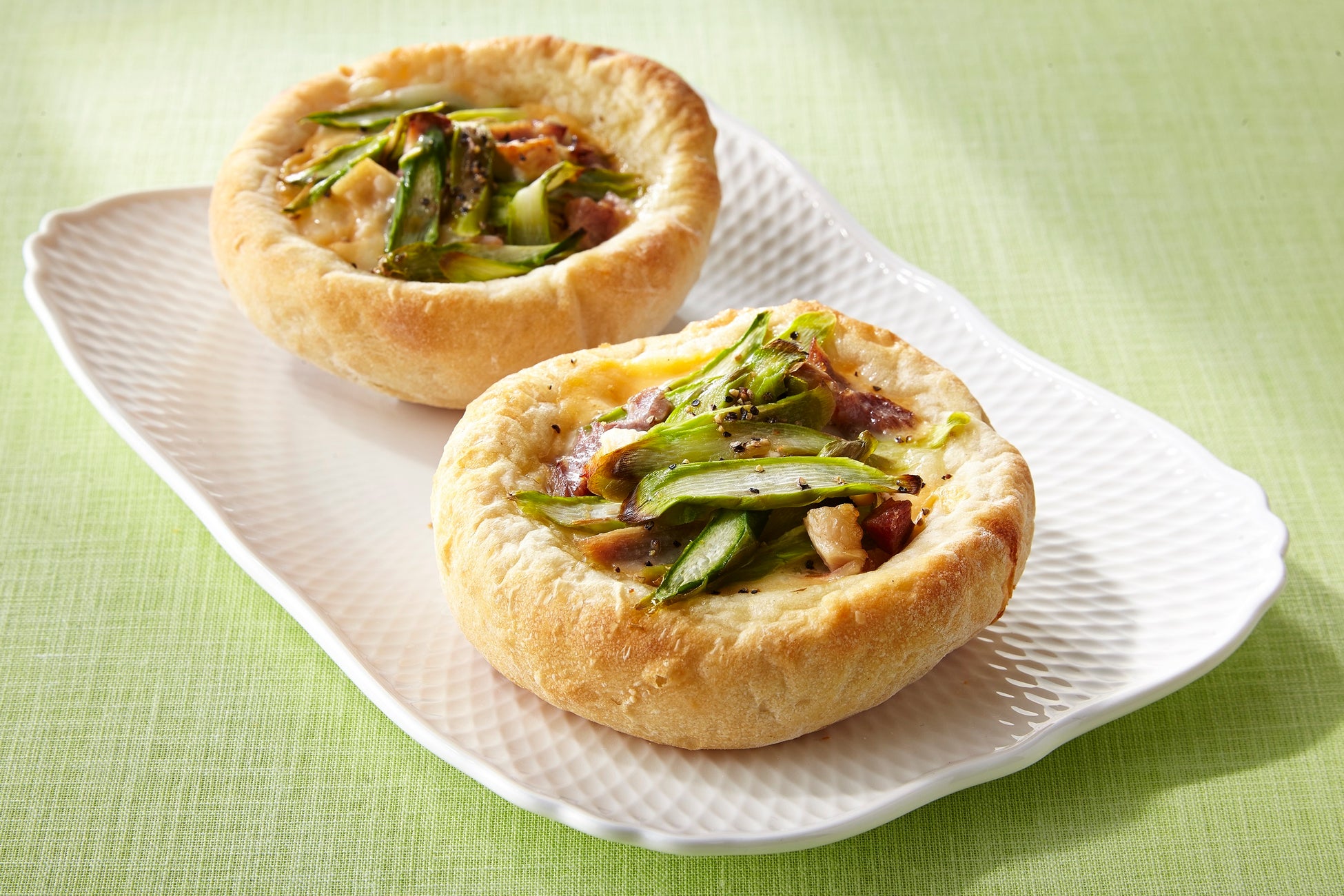 <イルマットーネアルル>《第20回記念 特別限定品》《実演》とろける3種のチーズの北海道アスパラベーコンパン(1個)…540円