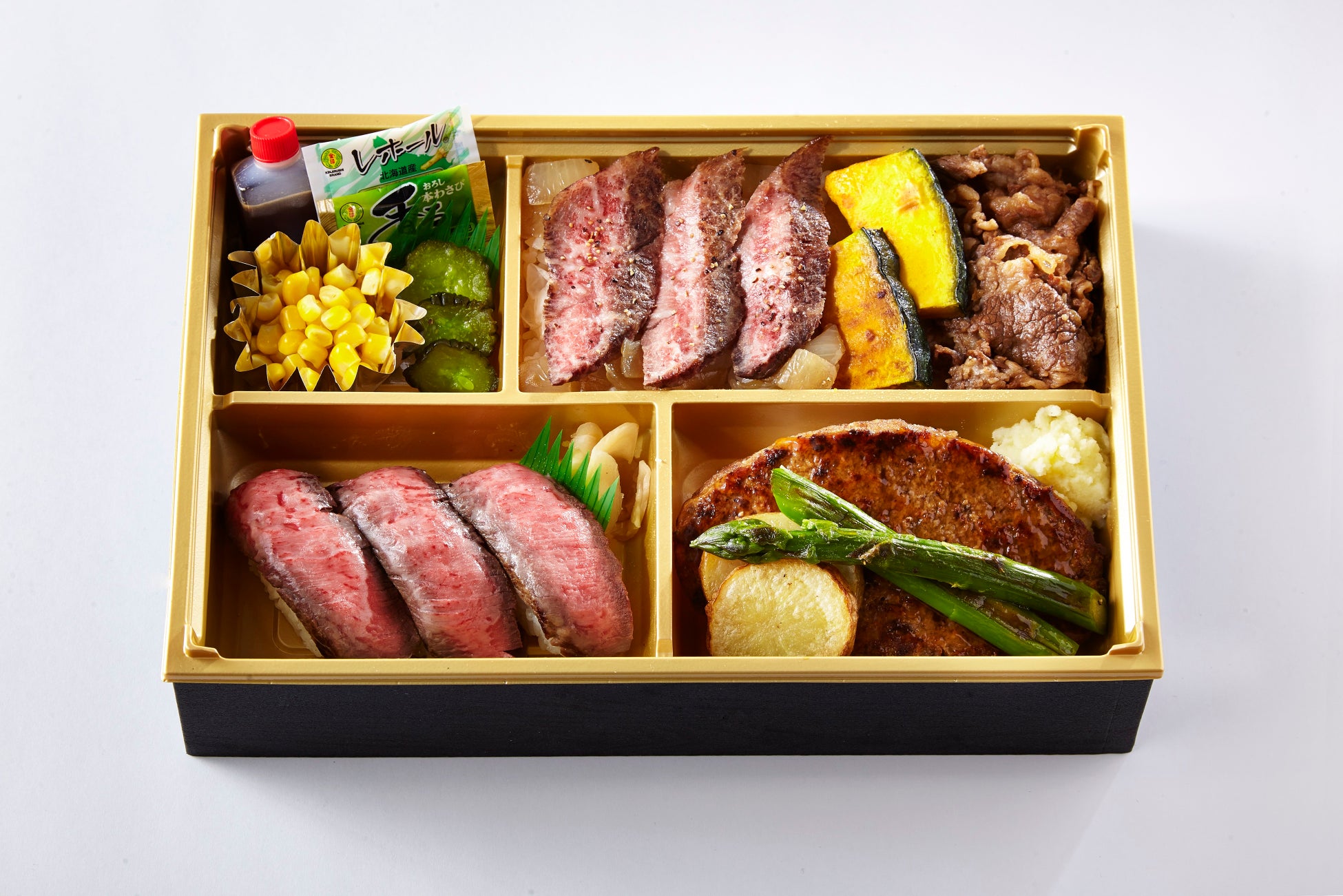 白老牛ミスジステーキを使った四種贅沢膳(アスパラ添え)(1折)…2,970円<各日30点限り>