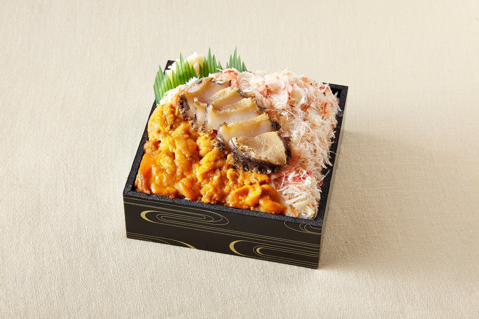 毛蟹のほぐし身と柔らかい蒸しアワビ、蒸しウニのシ