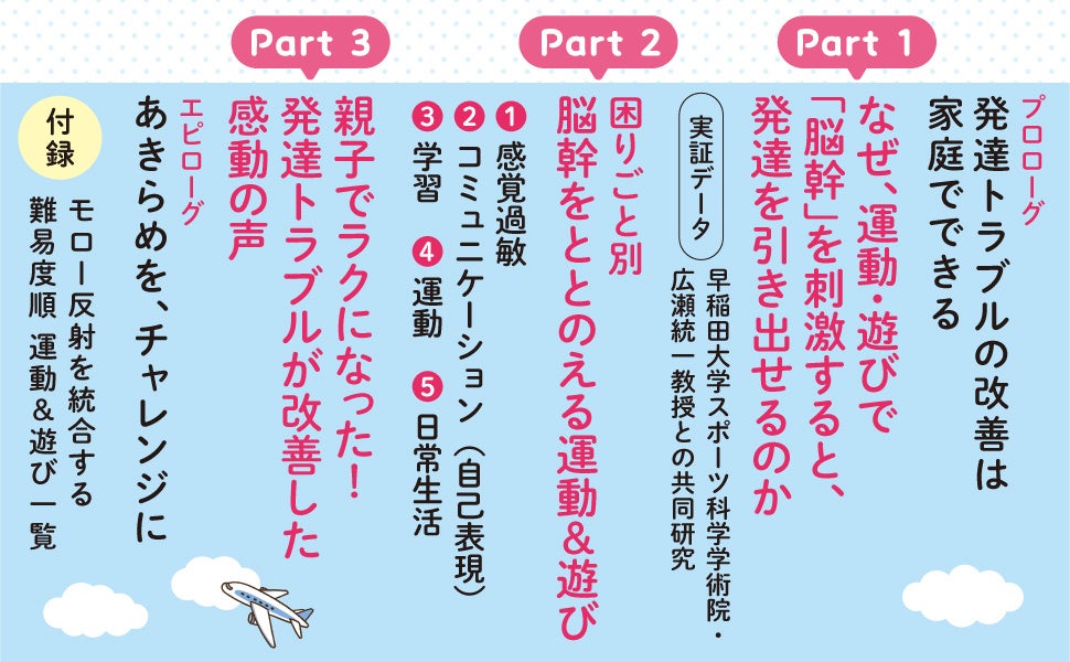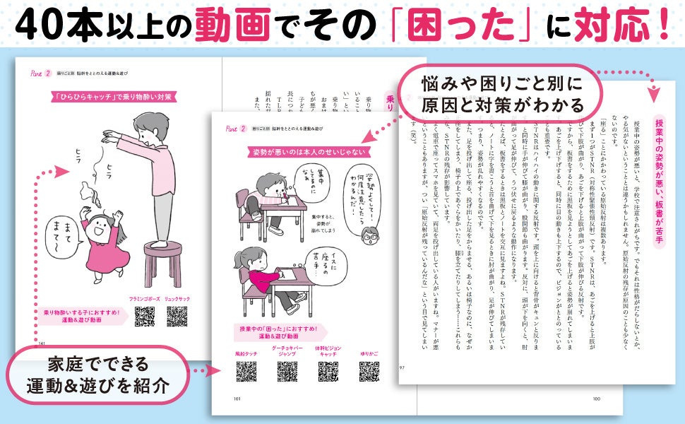 本書では集中力が続かない・姿勢が悪い・体幹が弱い・言葉の遅れなど、その「困った」に対応した、家庭でできる運動・遊び動画QRコードつきで紹介。子どもの成長をサポートします。