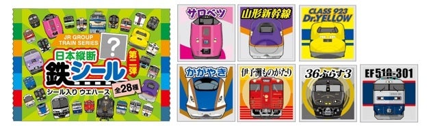 表面にはJR7社の代表的な車両イラスト、裏面には各車両の解説が書かれた「鉄シール」!7社×各4車両の全28種がランダムに封入されています。1BOX(※)購入でコンプリートできます。イラストは全種描き下ろし!