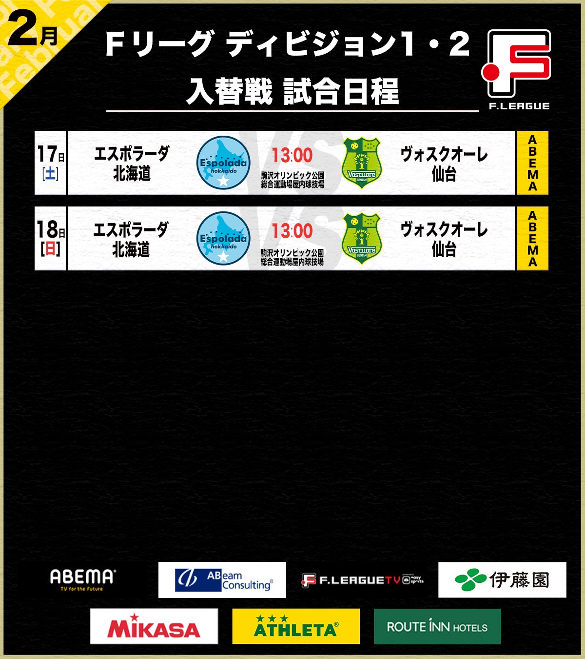 エスポラーダ北海道の残留か、ヴォスクオーレ仙台の昇格か、運命の2日間に注目!【Fリーグ2023-2024 ディビジョン1・2入替戦】