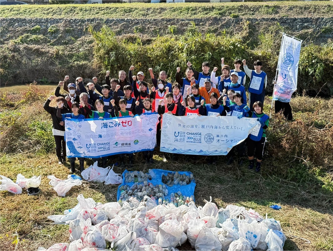 一般社団法人 海と日本プロジェクトinえひめは、12月7日(日)に愛媛県立松山西中等教育学校内の環境活動グループ「新世界学辞典」のメンバーが中心となり企画し、地域住民と連携した都市河川の清掃イベントを開催しました。このイベントは、日本財団が推進する海洋ごみ対策プロジェクト「海と日本プロジェクト・CHANGE FOR THE BLUE」の一環で開催するものです。