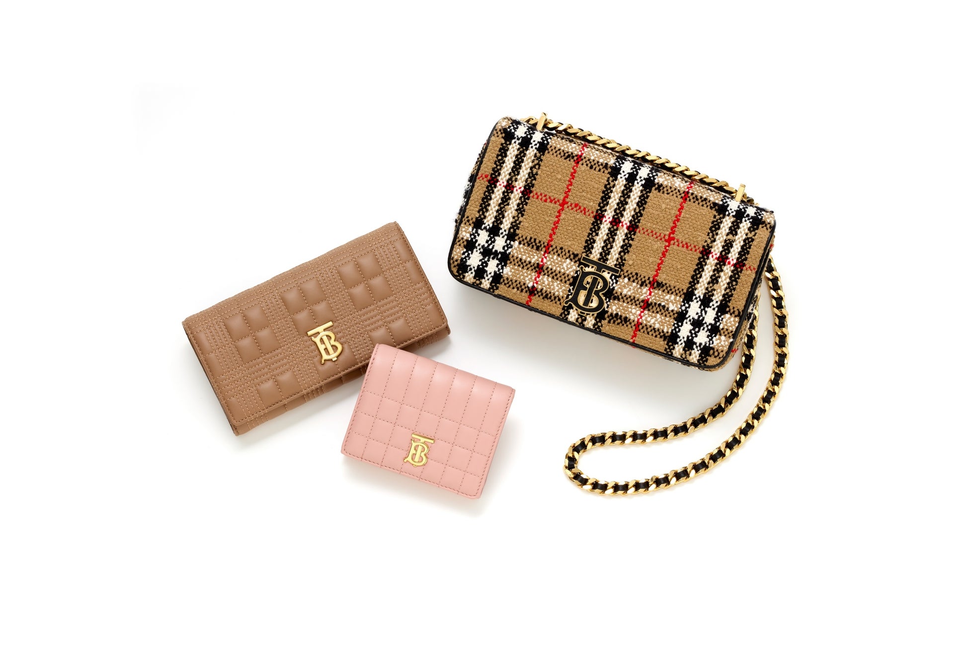 バーバリーを象徴する「ローラバッグ」は、ソフトなシルエットのランウェイバッグです。イタリアでなめし加工を施したレザーをキルティングしたメタリックシルバーのローラバッグのほかに、クリスタルのディテールをほどこしたもの、ブークレ地でヴィンテージチェックを再現したものがあり、どれもトーマス・バーバリー モノグラムがアクセントになっています。コットンとトップステッチレザーで作った容量たっぷりのトートバッグは、バーバリーのロゴのプリントが特徴です。メンズは、エグザジェレイティッドチェック レザートート、そしてベルトバッグを用意しました。カラーブロックチェックが明るい印象のスリムポーチは、取り外し可能なレザーリストストラップがついています。ブラックグレインレザーのかっちりとしたトートバッグとメッセンジャーバッグは、トーマス・バーバリー モノグラムがさりげないアクセントになっています。