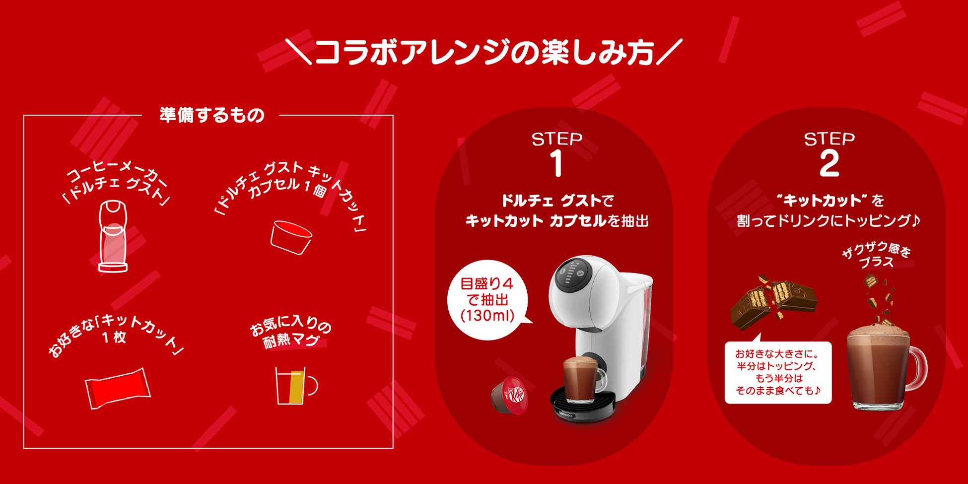 <「ネスカフェ ドルチェ グスト キットカット」と「キットカット」のコラボアレンジの楽しみ方>