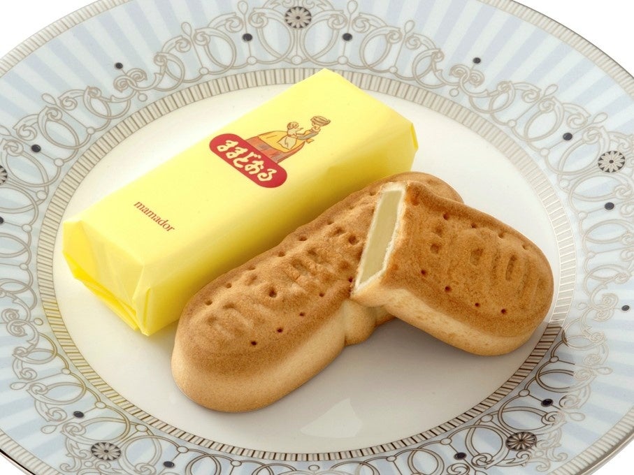 ずっと変わらないやさしい味わいのままどおる。バターを使った生地でミルク味の餡を包み込んだ焼菓子です。
