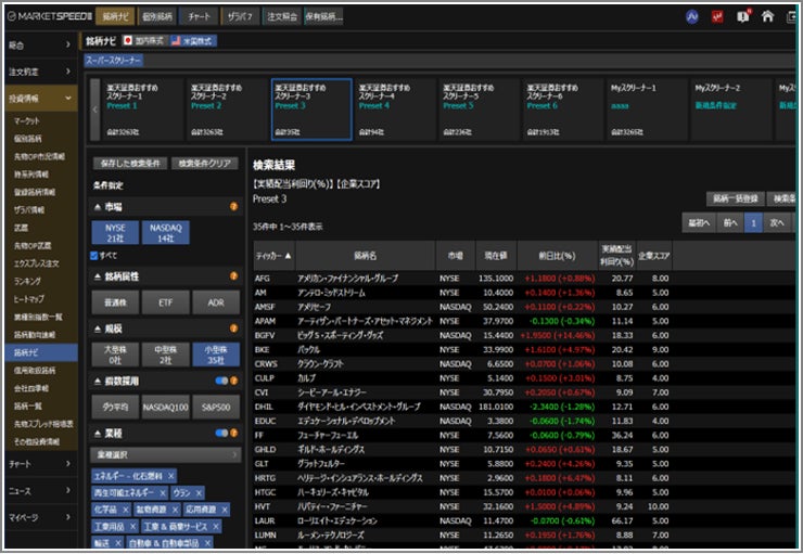 楽天証券、「米国株スーパースクリーナー」提供開始