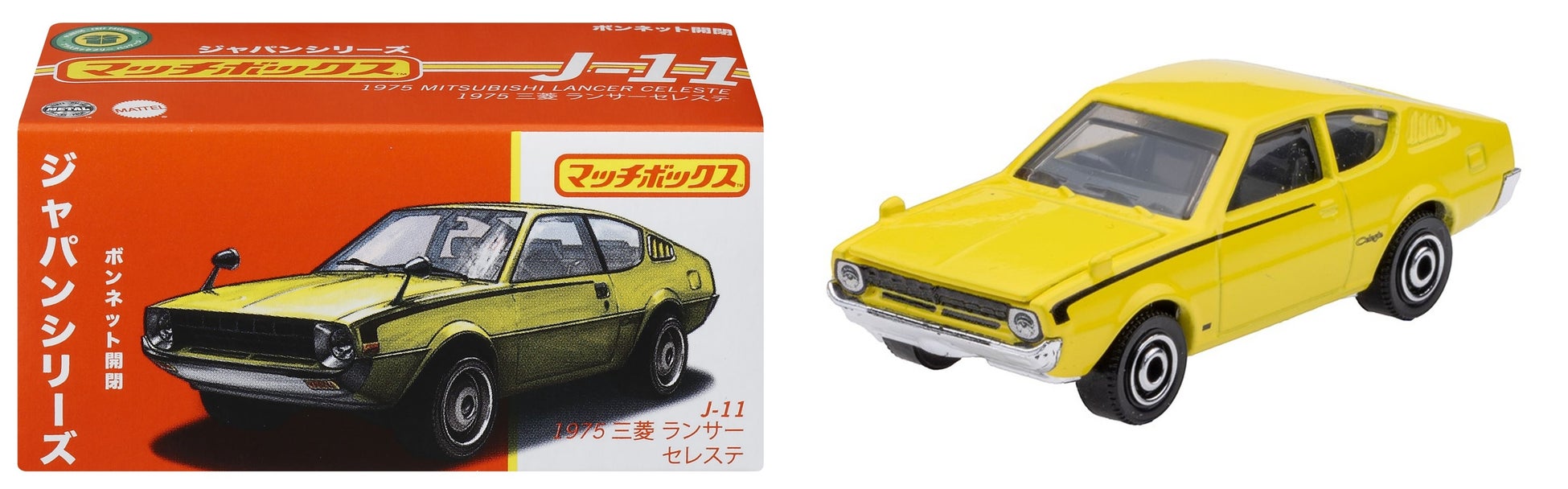 セレステは、若者向けのスペシャリティカー・カテゴリーに向けて、三菱が1975年に発売したモデルです。基本的なコンポーネンツは、同社の小型車、ランサーのものを流用していましたが、一番の特徴は当時のアメリカ車をダウンサイジングしたようなスタイリッシュなファストバックデザインのボディです。当時の三菱はアメリカのクライスラーと提携関係にあったことから、クライスラーのプリマス・ブランドからアローの名でも発売され、高い人気を誇っており、マッチボックスではアメリカ仕様のプリマス・アローではなく、右ハンドルの日本仕様、三菱 ランサー セレステとして発売いたします。日本仕様ならではフェンダーミラーなどディテール表現も抜かりがなく、エンジンフードを開けると1.6リッターエンジンがしっかりと再現しております。