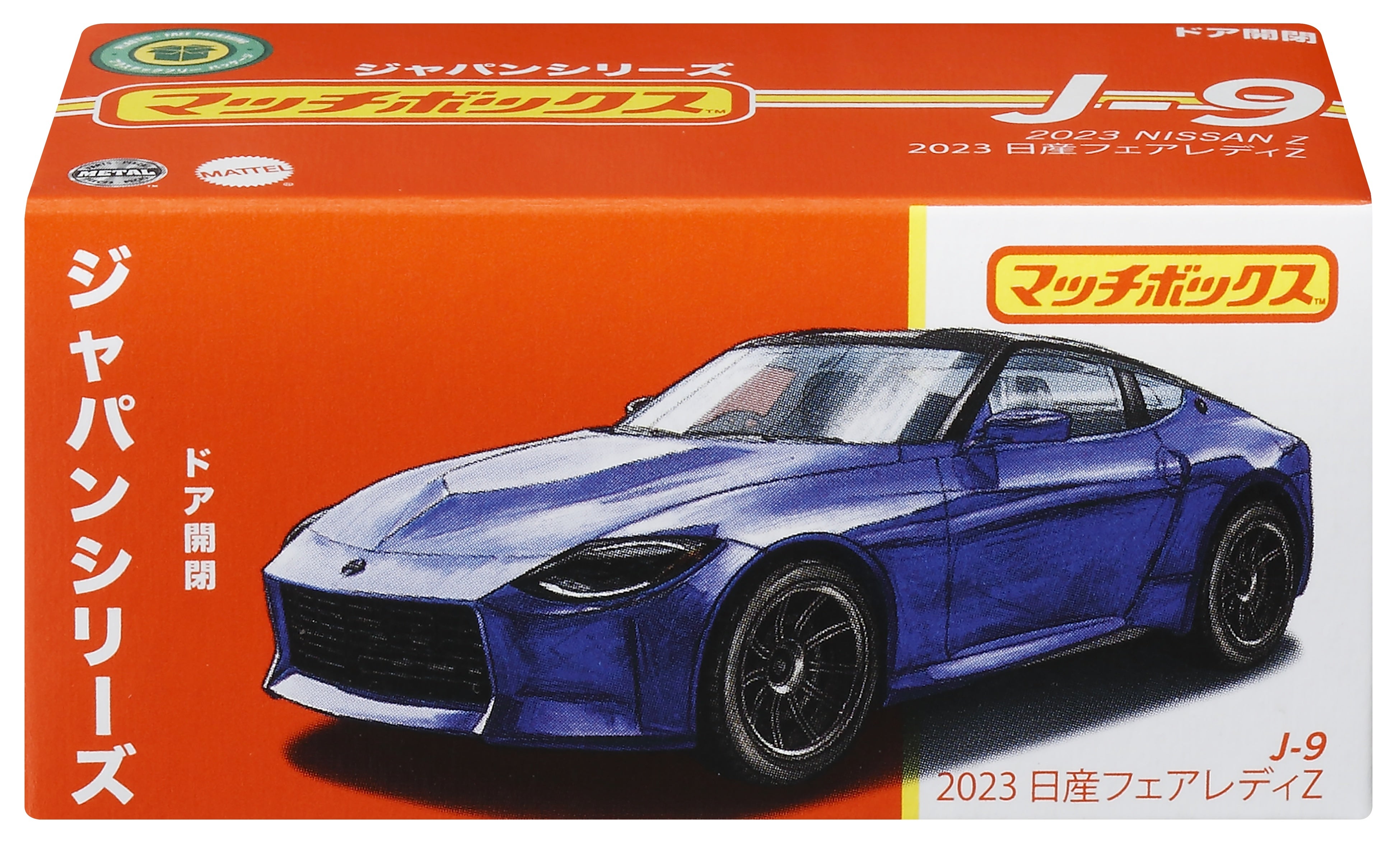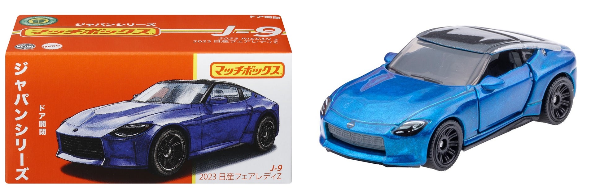 日本でも2022年夏ごろからデリバリーが開始された新型フェアレディZ(RZ34型)。最初に発売された実車は2021年にワールドローンチされたイカズチイエローのプロトタイプをモチーフにしたプロトスペックですが、マッチボックスでは2023年型の量産車を題材といたしました。開閉式のドアを開けると、外観同様、初代をイメージした3連センター補助メーターを備えたダッシュボードも再現されていることが分かり、ボディカラーはイカズチイエローに続いてメディア露出の多い、セイランブルーをチョイスしております。また、ルーフとホイールは実車同様にブラックアウトされております。