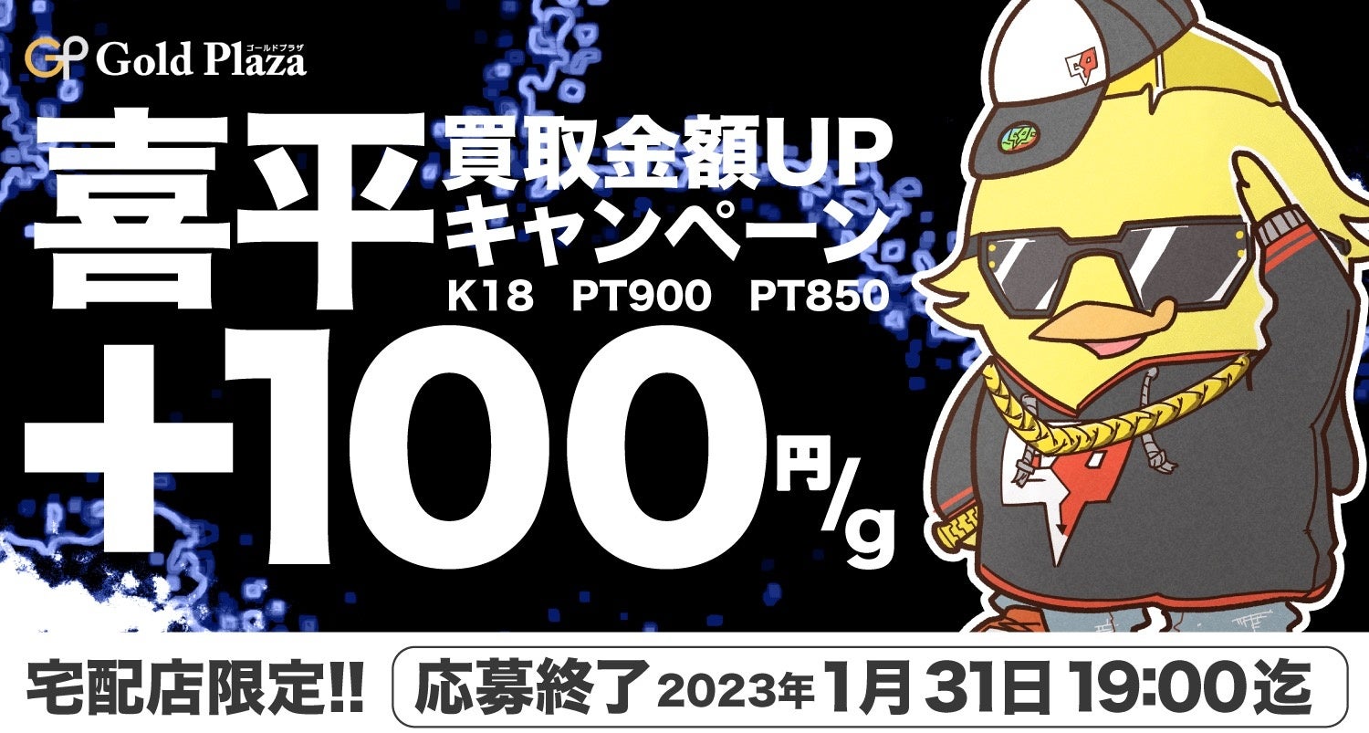 株式会社ドリームファクトリー(本社:大阪市北区 代表取締役:井上 馨)が展開するゴールドプラザでは貴金属・ブランド品・ 宝石を業界最高水準の安心買取りで累計56万人のお客様にご利用いただいております。また店舗での買取をはじめLINE査定、宅配買取など、各種お客様に合わせたお買取り方法にもご対応しております。今回のキャンペーン企画ではゴールドプラザ宅配センターにて12/1~1/31まで喜平買取キャンペーンを実施致します!