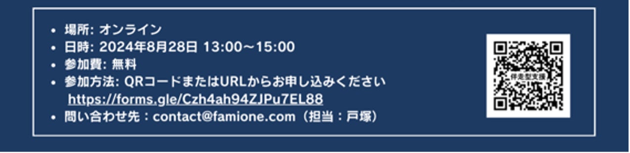 株式会社ファミワン 広報担当 Mail: info@famione.com TEL:080-2243-6995