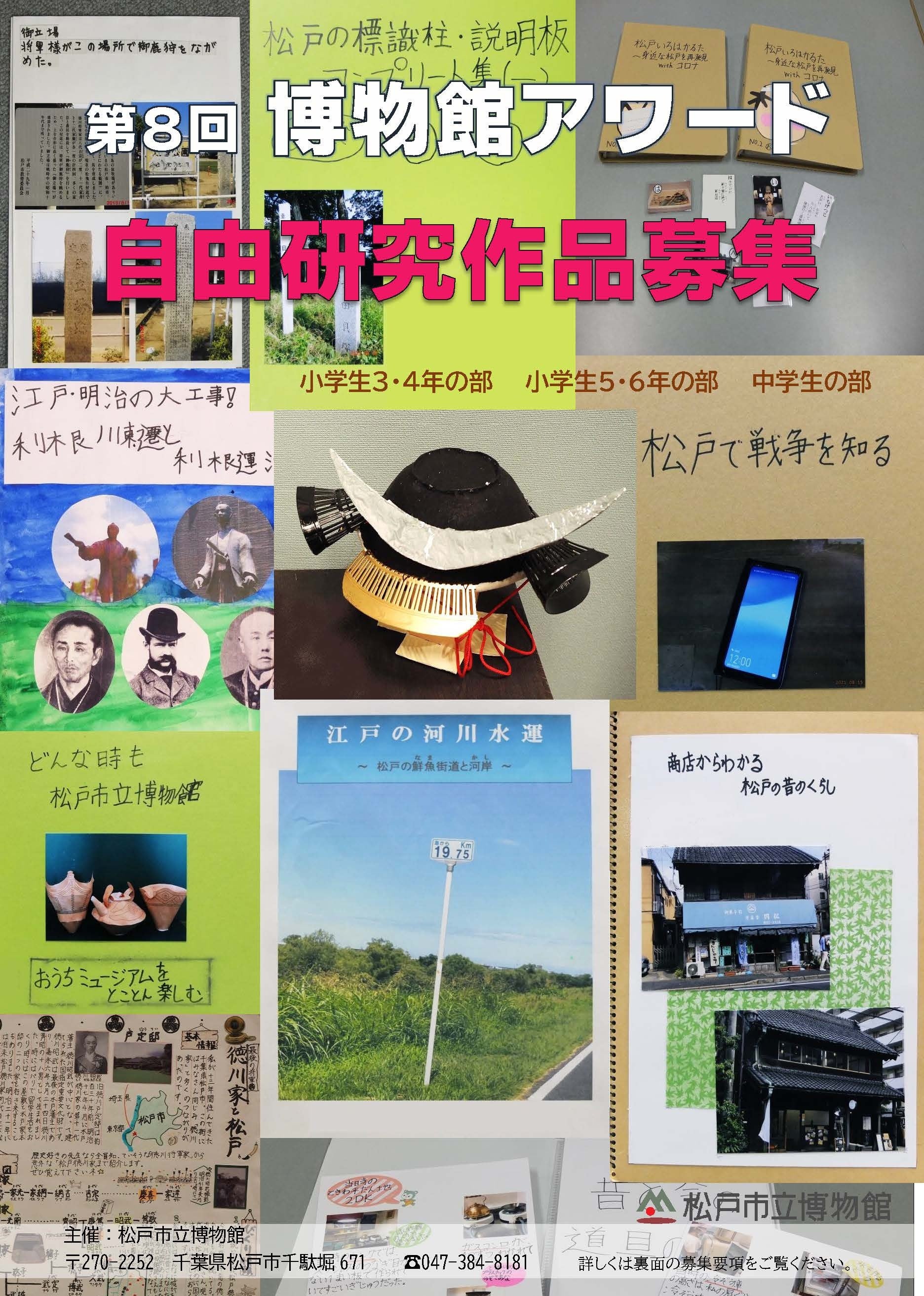 松戸市内外の児童生徒の博物館への理解、活用の推進を図ることを目的に、「松戸市立博物館アワード」として、歴史自由研究部門と歴史イラスト部門のコンクールを開催します。