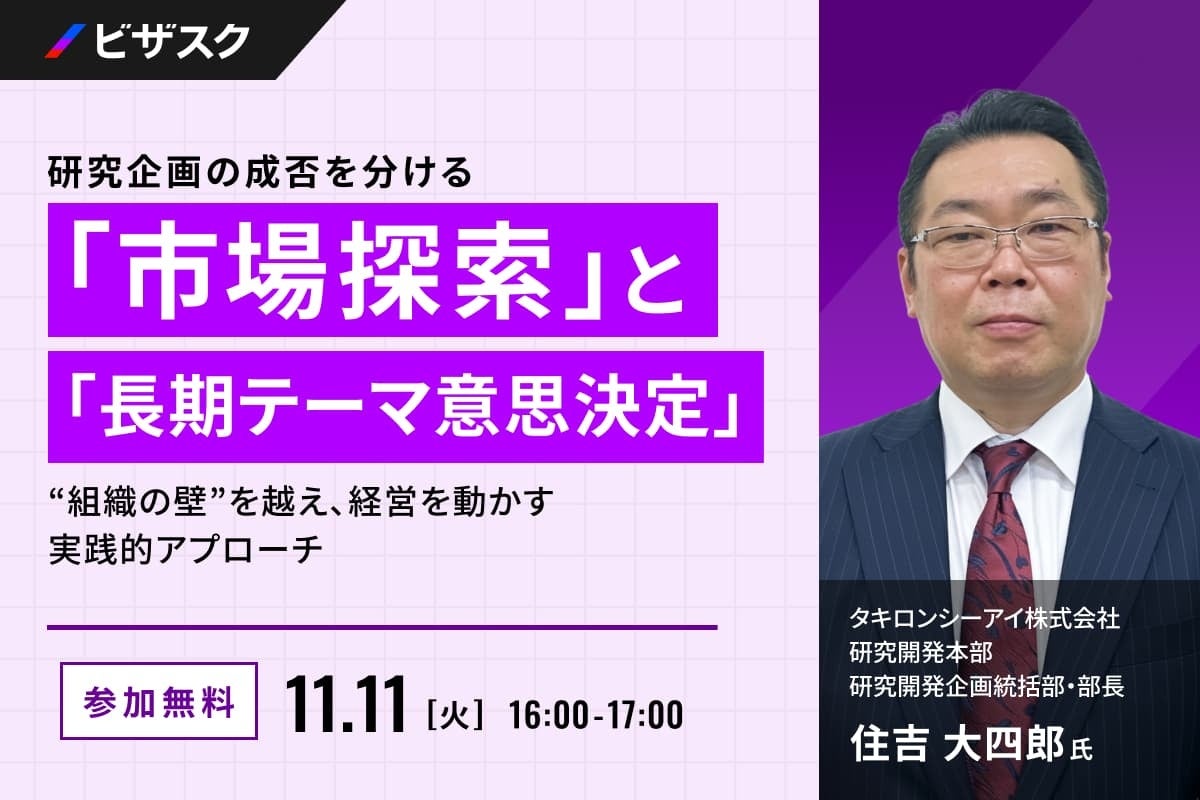 【 11/11 (火) 16:00 】研究企画の成否を分ける「市場探索」と「長期テーマ意思決定」 無料オンラインセミナーを開催