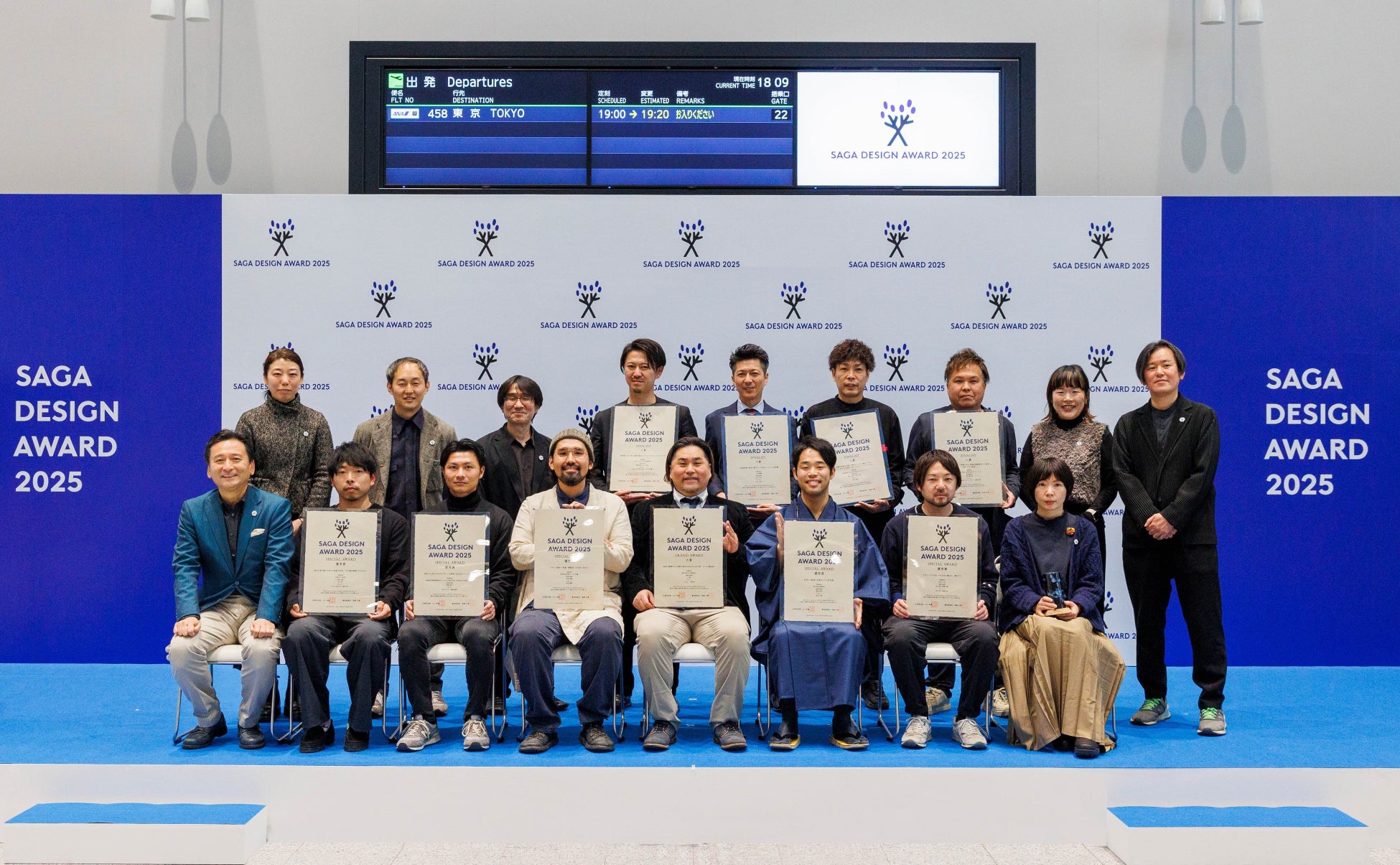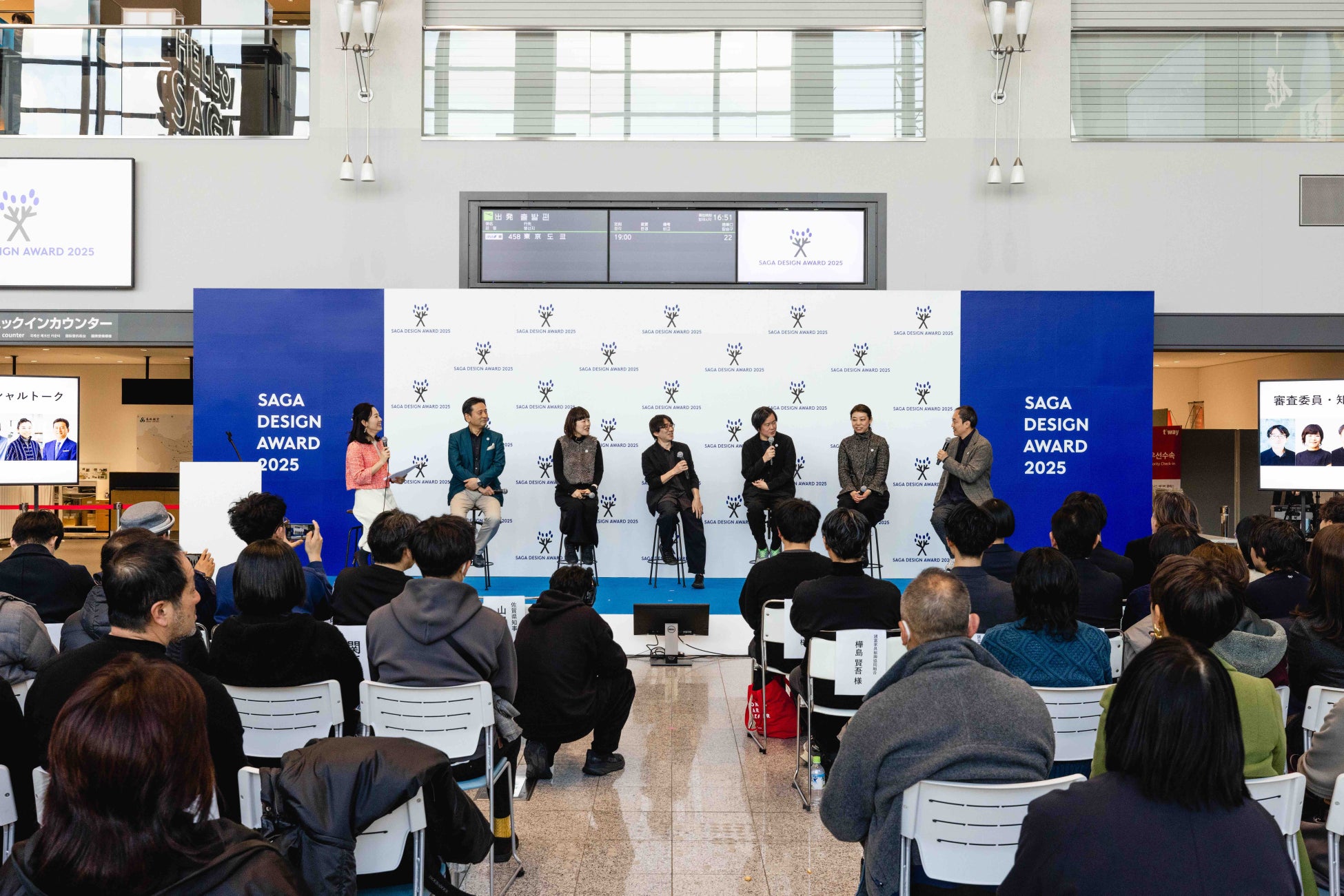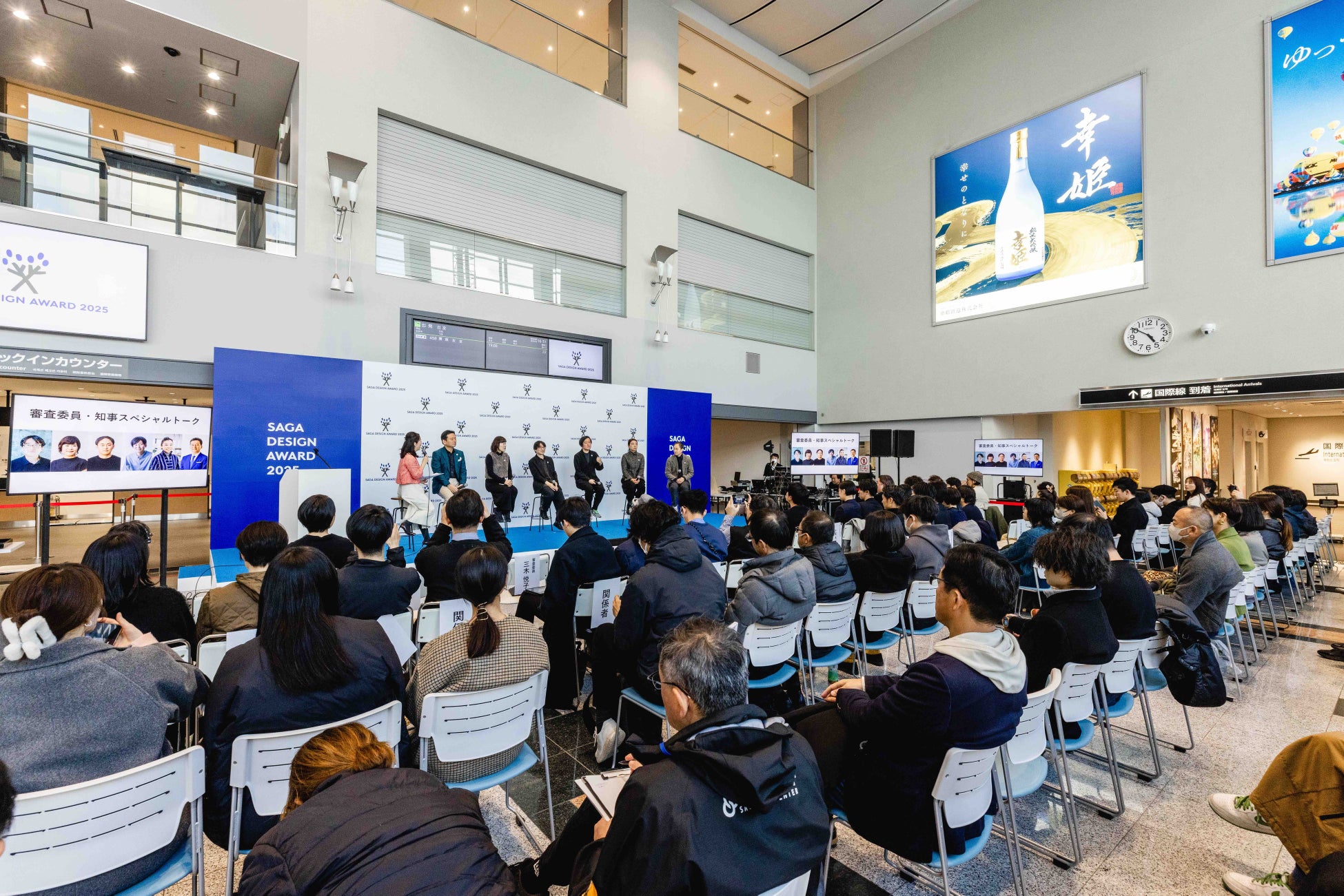 佐賀から未来を切り拓き世界へ羽ばたいて欲しいという想いから、2025年2月8日(土)の表彰式は九州佐賀国際空港にて開催。12件のプロジェクトの表彰のほか、審査委員と知事によるスペシャルトークも行い、多くの観覧客と共に佐賀のデザインに浸る1日となりました。