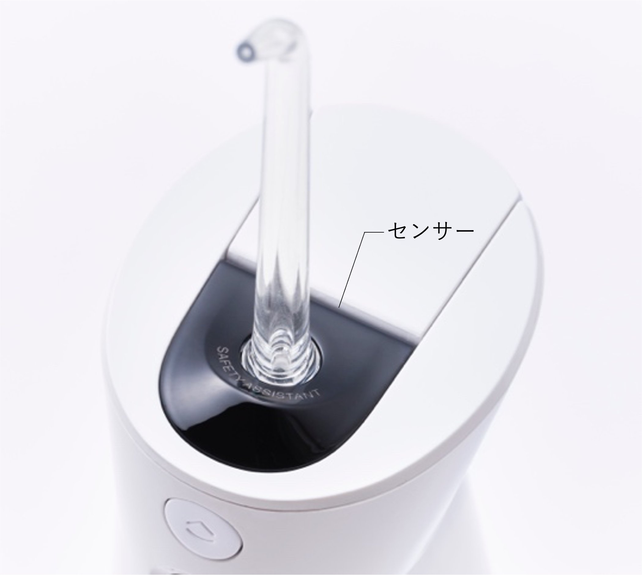 電源がオンの状態でノズルを口腔内から出すと、自動的に電源がオフになる機能。水の飛び散りを防ぎ、初心者の方をサポートします。(YOI-2000Wに搭載。)