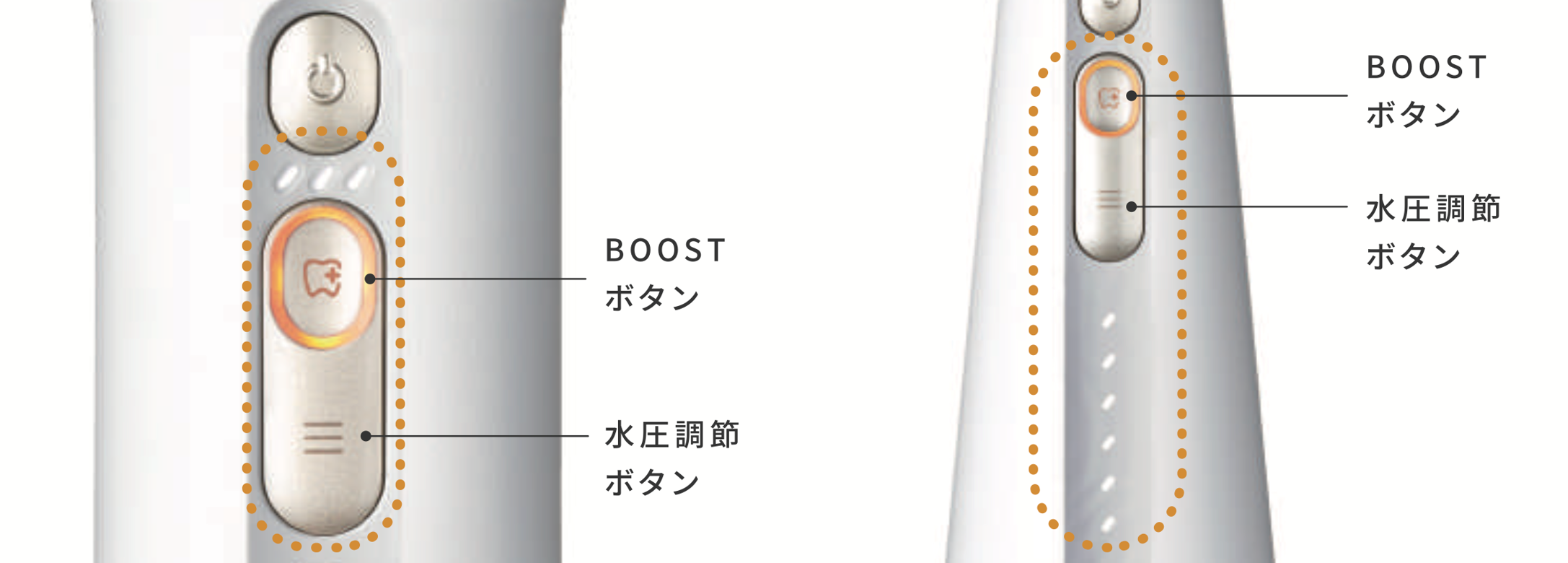 ジェットフロスMINI(YOI-1000W)は3段階+BOOSTモード。