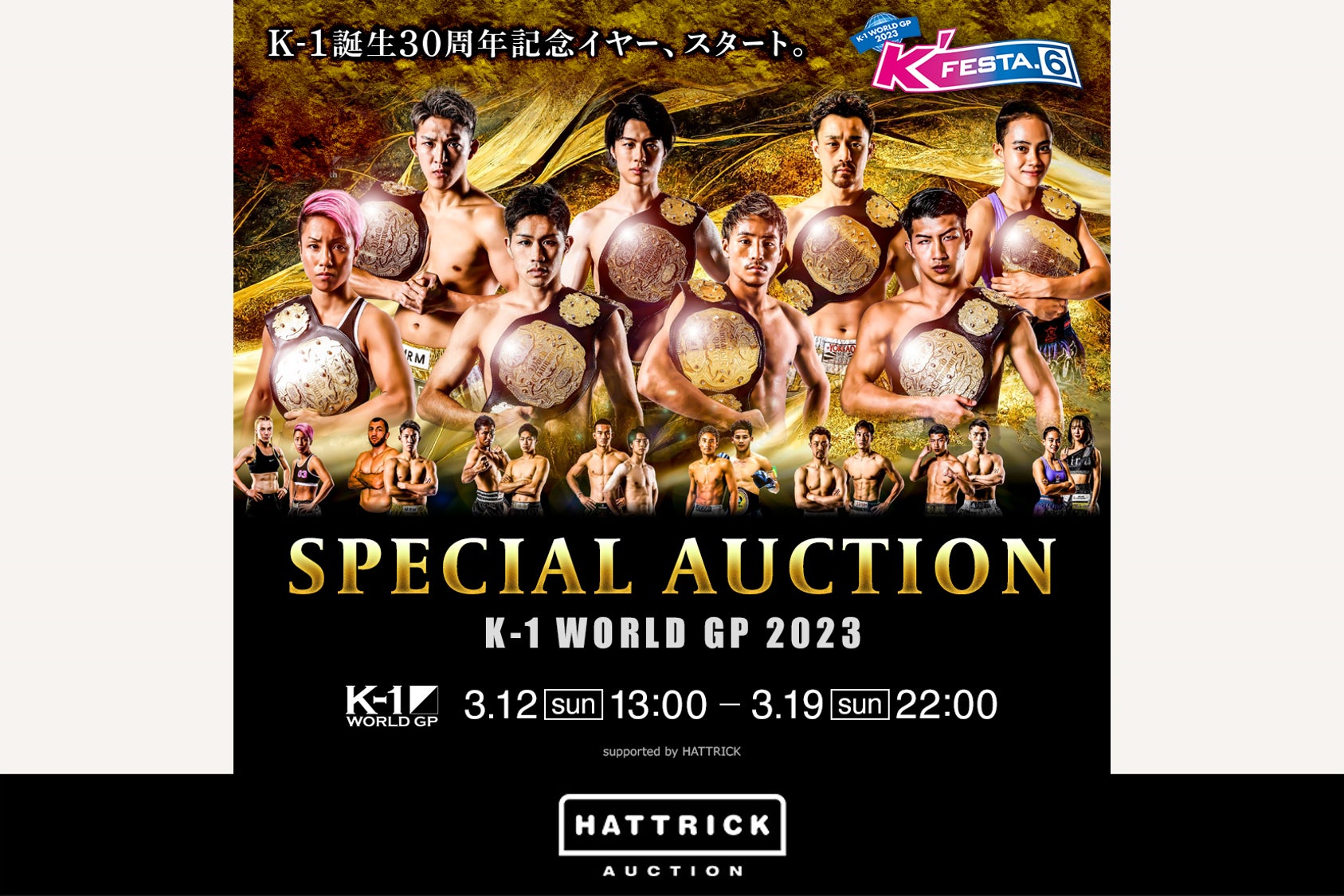 HATTRICK、K-1誕生30周年記念イヤーを祝して! 「100年続くK-1」を目指すK-1がファンとともにスポーツの未来をつくるためにスペシャルオークションを開催!