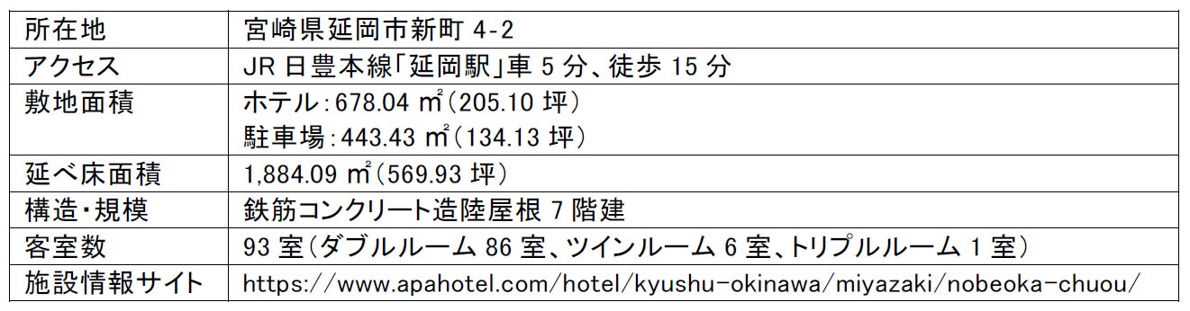 「アパホテル〈宮崎延岡中央〉」施設概要