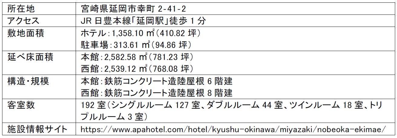 「アパホテル〈宮崎延岡駅前〉」施設概要