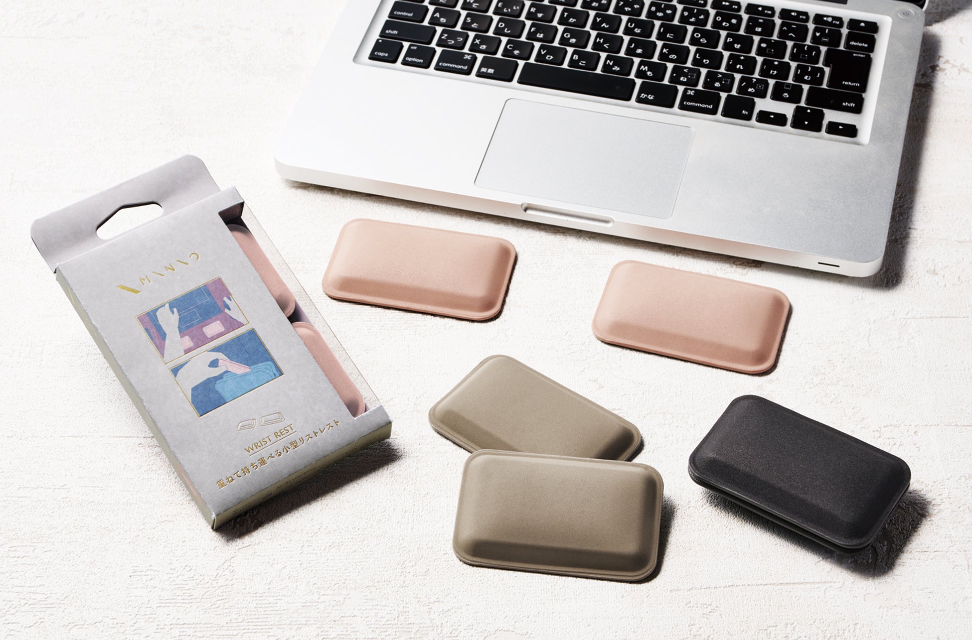 「はたらくをもっと軽やかに」をコンセプトにした薄型設計のマグネット内蔵リストレスト。2つに分かれたリストレストにより、自身の手首にベストな位置に配置することができます。デスク上でも省スペースでスッキリした作業環境を実現。磁力によってリストレスト同士が吸着し、コンパクトに持ち運びが可能です。また、継続生産可能なヴィーガンレザーを採用しています。