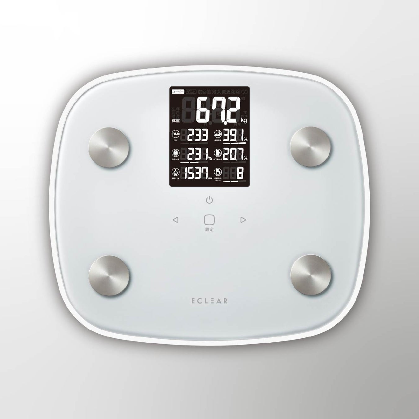 液晶画面を大きくし、全ての測定データの一覧表示を可能にした体組成計です。乗ってすぐに見たい項目が素早く確認でき、前回差と比較できるようになっています。また、表示画面をスマホで撮影することで、レコーディングダイエットにも便利です。健康診断で気になる項目(内臓脂肪レベル・体脂肪率・BMIなど)8項目が測定可能です。