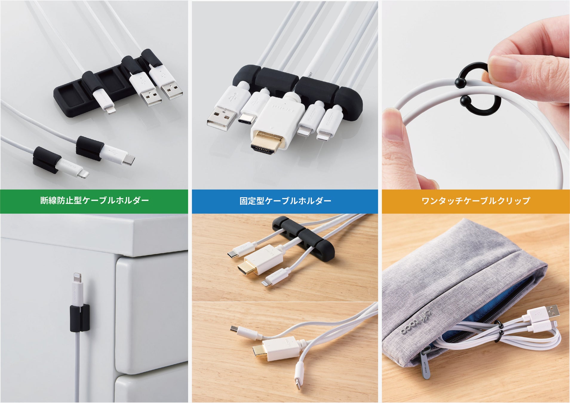 <断線防止型ケーブルホルダー、固定型ケーブルホルダー、ケーブルクリップ>