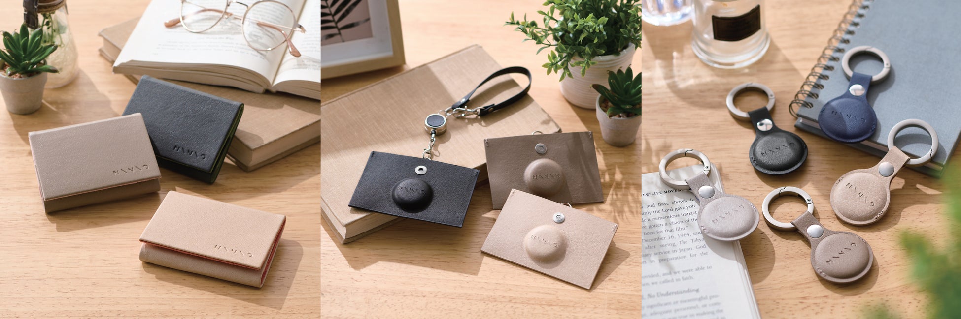 「うすく、かるく、スマートに」がコンセプトのヴィーガンレザーアクセサリ「MINIO」シリーズのAirTag対応アクセサリーです。紛失したら困る、財布・カードケース・キーリングをAirTagとスマートに一体化することで、ミニマルで紛失しない利便性を実現しました。生地の重なりと縫製ラインを必要十分な要素で構築し、所作までスマートな在り方を提案する製品です。