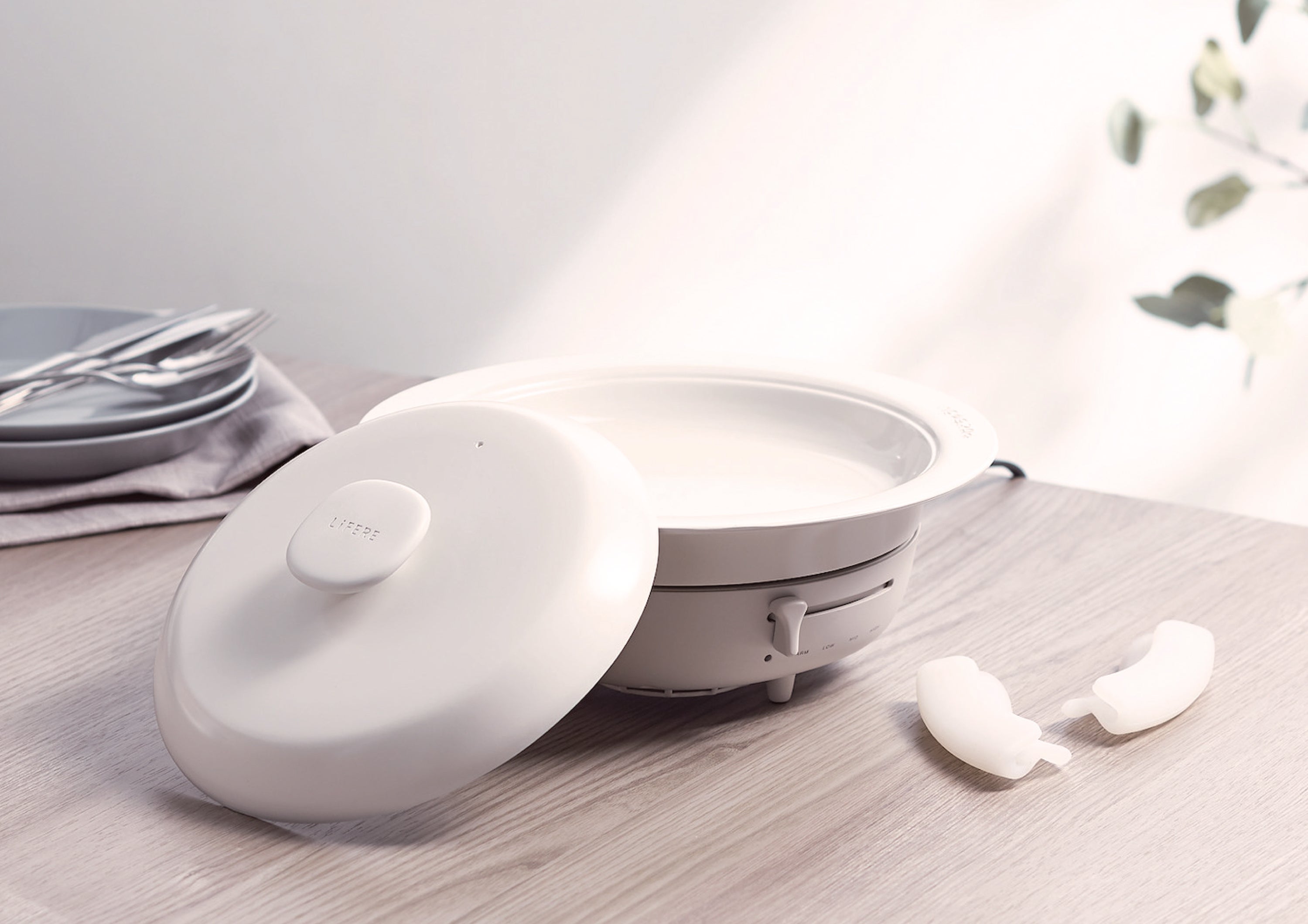 テーブルで料理できるお皿‟HOT DISH”。IHとプレートを一体感のある設計にして機器っぽさを排除し、まるでお皿のような佇まいを実現。最後の一口まで温かくそのまま食べられ、お皿1枚洗うだけ。つくるから片付けるまでをシームレスに。毎日のおうち時間に「食」と向き合う心地良い時間をもたらします。
