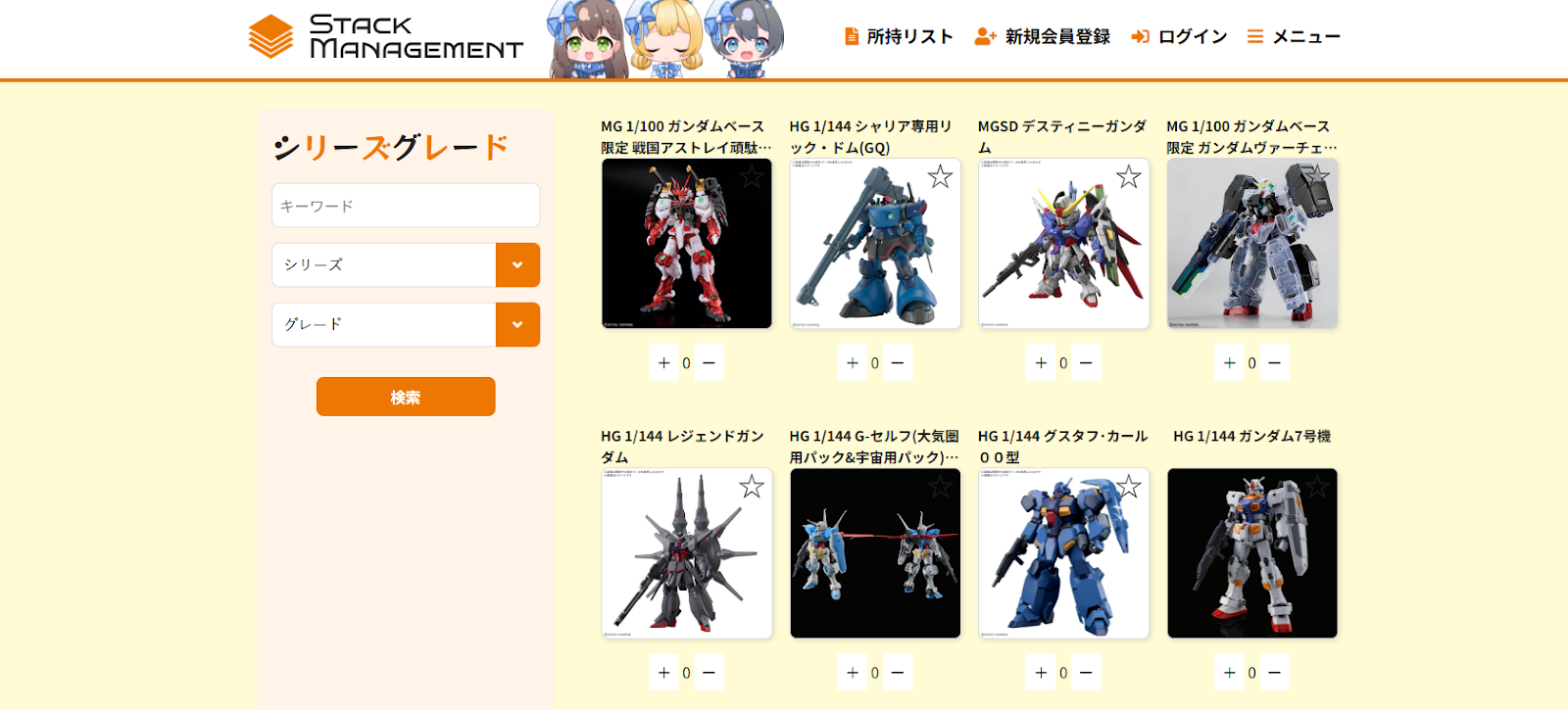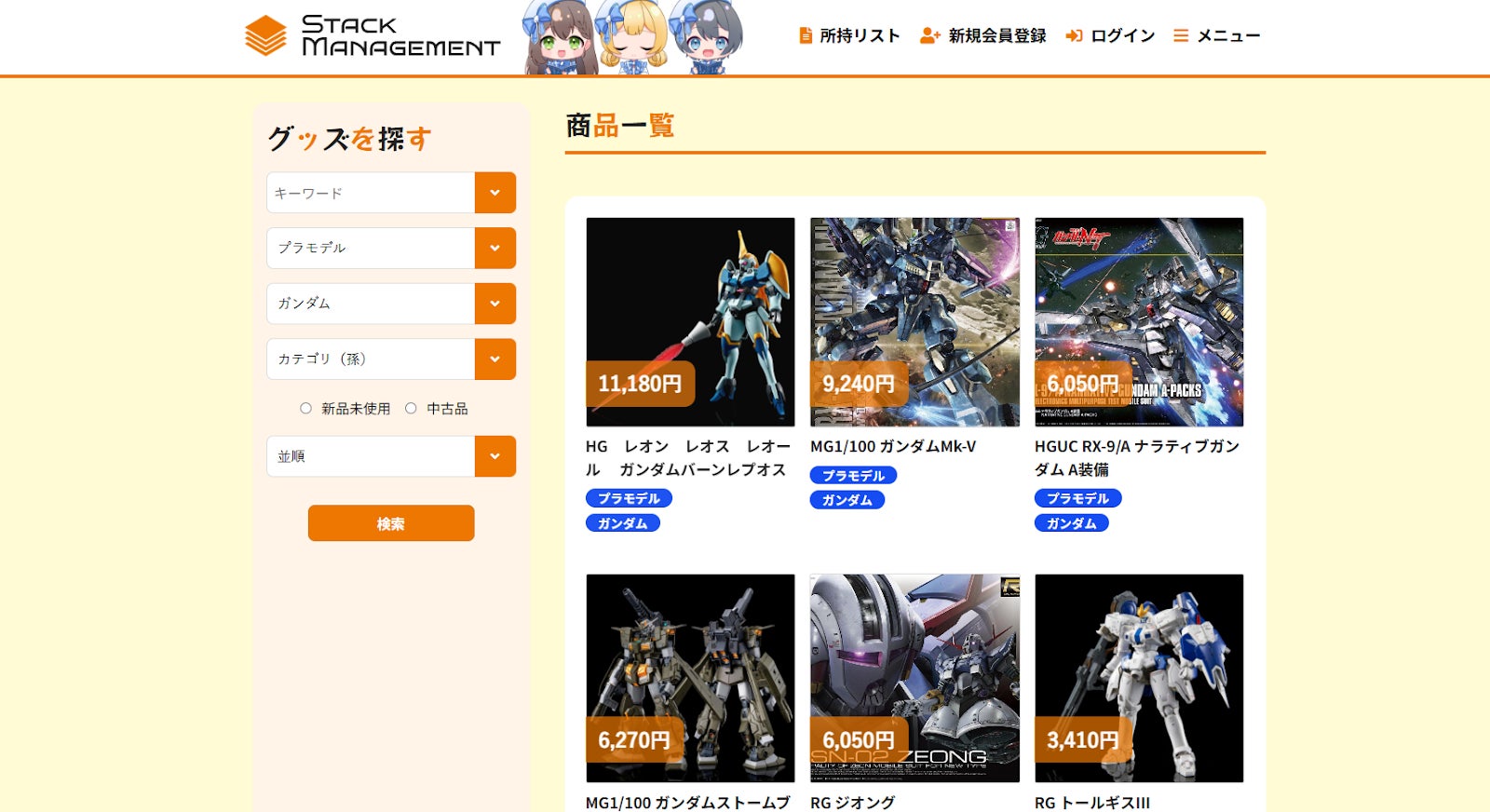 「STACK MANAGEMENT」は、ガンプラ収集者に向けたコレクション管理・売買のためのプラットフォームとして運営を続けています。