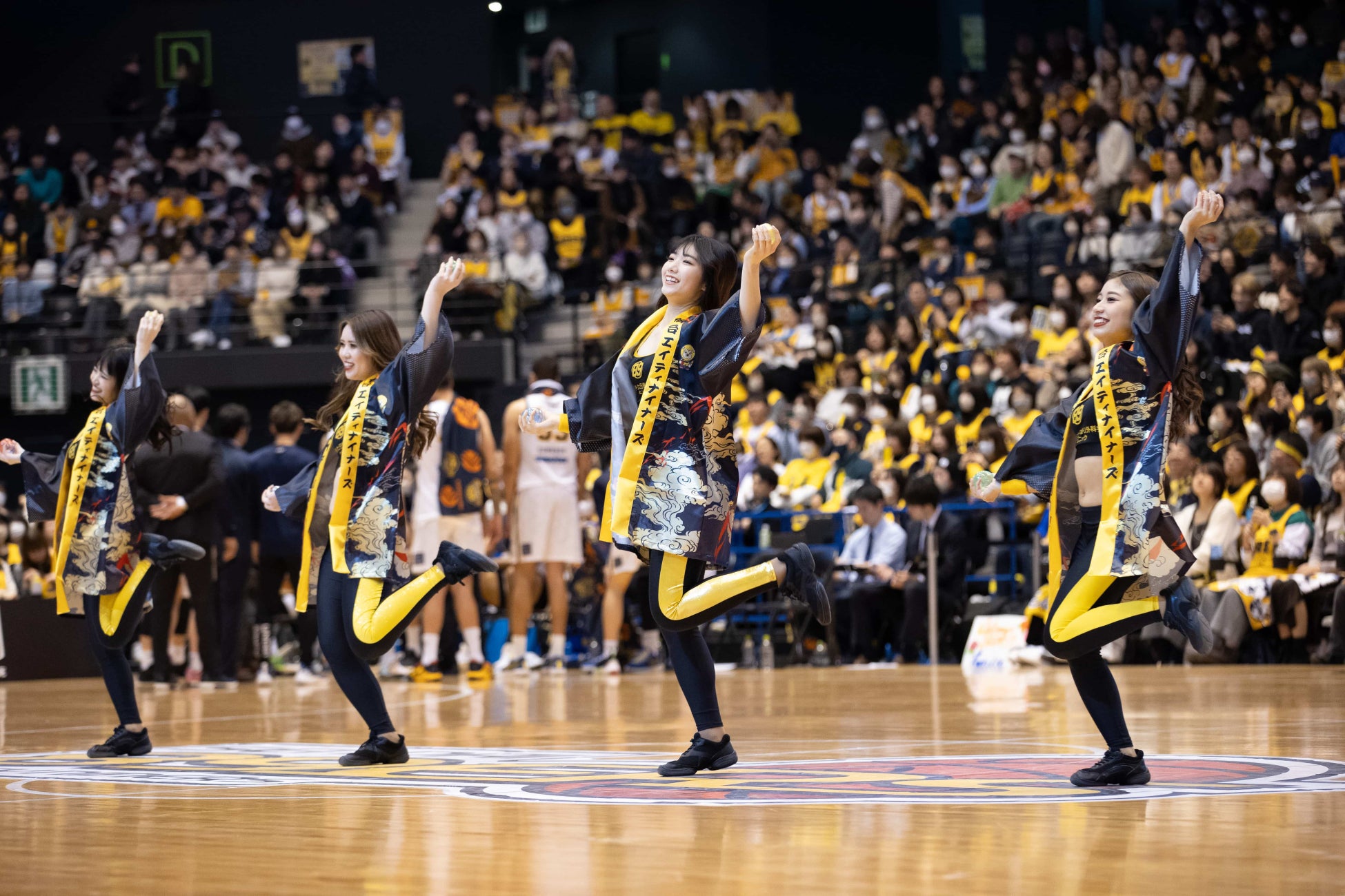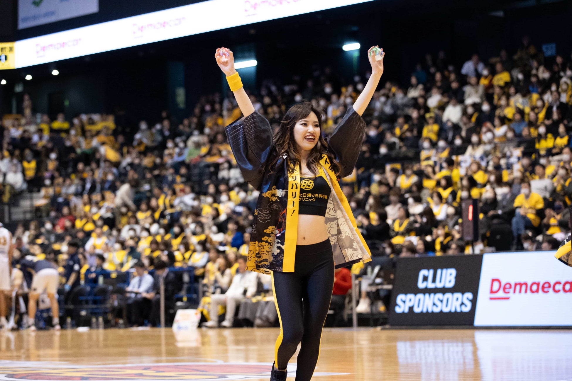 試合の合間ではオリジナル法被を着た89ERSチアーズが「出前サンバ」に合わせてダンスを披露。また、選手の名前の入ったカプセルを客席に投げ入れ、受け取った方には書かれた名前の選手のサイン入りオリジナル法被が貰えるプレゼント企画も実施し、試合を盛り上げました。