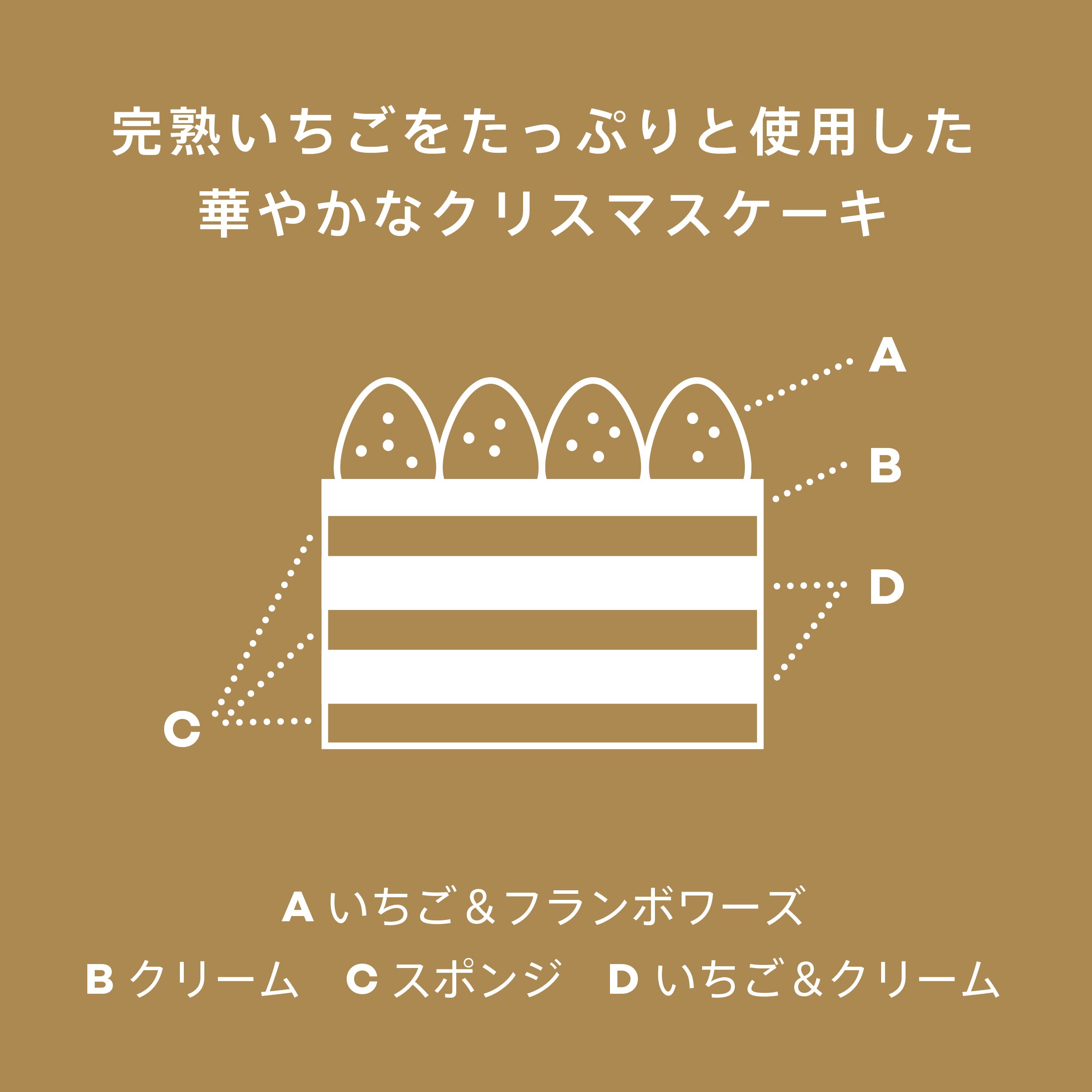 ローズウォーターを使用したさっぱりとしたクリームとジューシーで甘みの強い「紅ほっぺ」をふんだんに使用した見た目も華やかなクリスマスケーキ。スポンジやクリームなどで多層に仕立て、今までにない食感とおいしさを楽しんでいただけます。