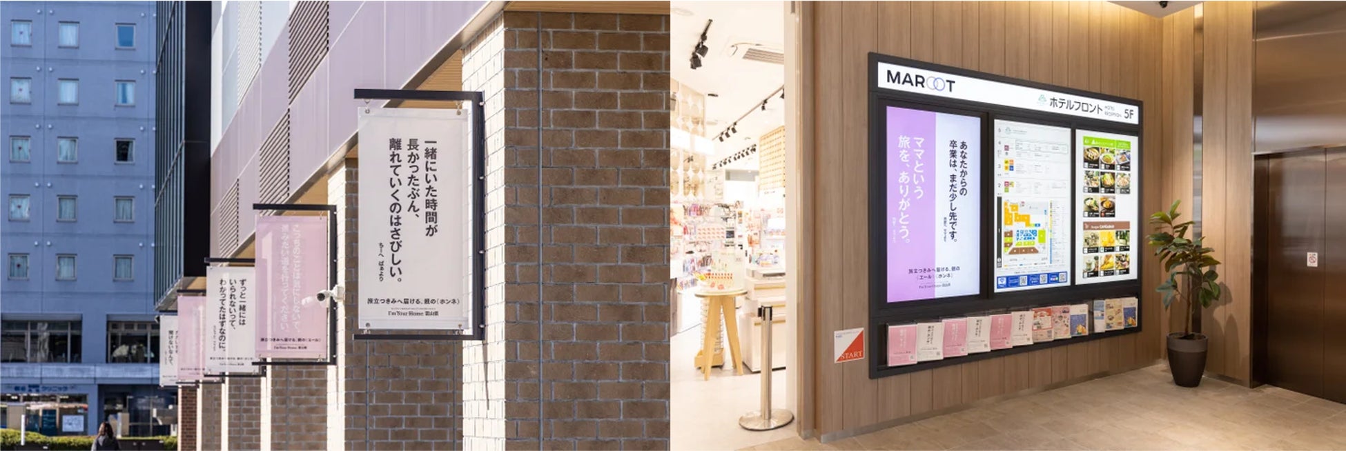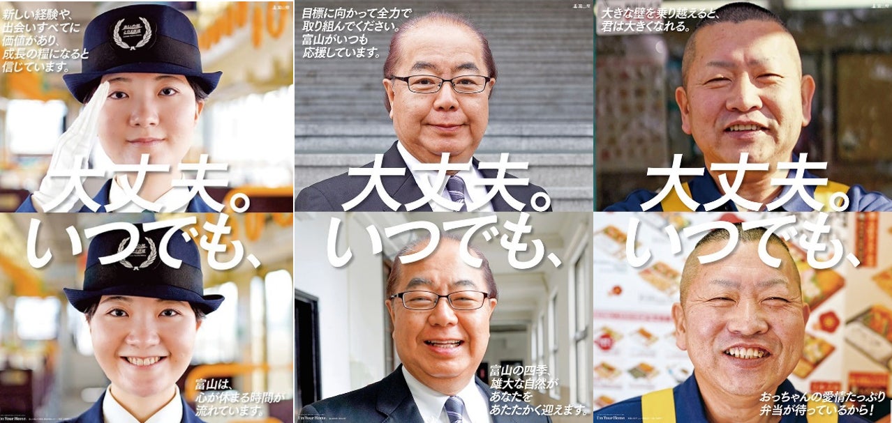 第一弾となる2022年度(2023年3月)は、「I’m Your Home.富山県 富山から旅立つあなたへ 〜親からの『エール』と『本当の気持ち』〜」と題して展開。保護者からの応援メッセージ(エール)と子どもが自立していくことで感じる寂しさ(ホントの気持ち)を富山県が集め、富山駅周辺に掲出しました。