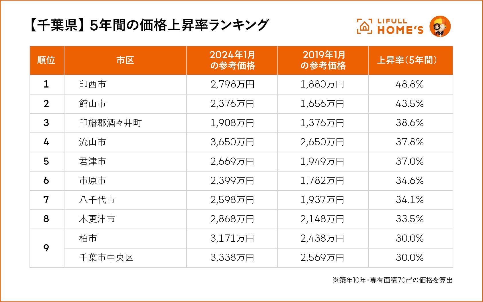 ・【千葉県】5年間の価格上昇率ランキングの各項目