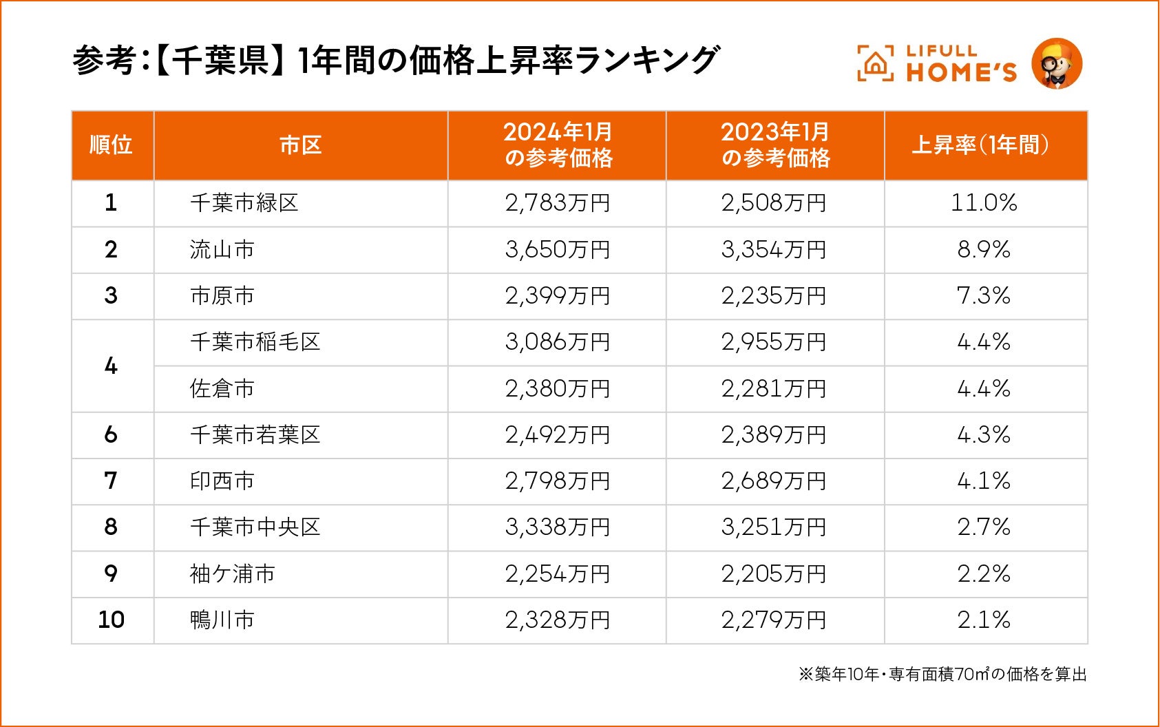 ・参考:【千葉県】1年間の価格上昇率ランキングの各項目