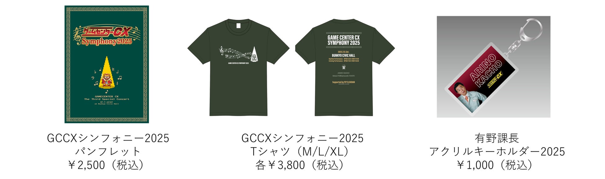 イベント限定グッズのGCCXシンフォニー2025パンフレットやTシャツには「ピップエレキバン」が登場します。ぜひお手に取ってご確認ください。その他には、有野課長のアクリルキーホルダーも当日イベント会場にて販売されます。