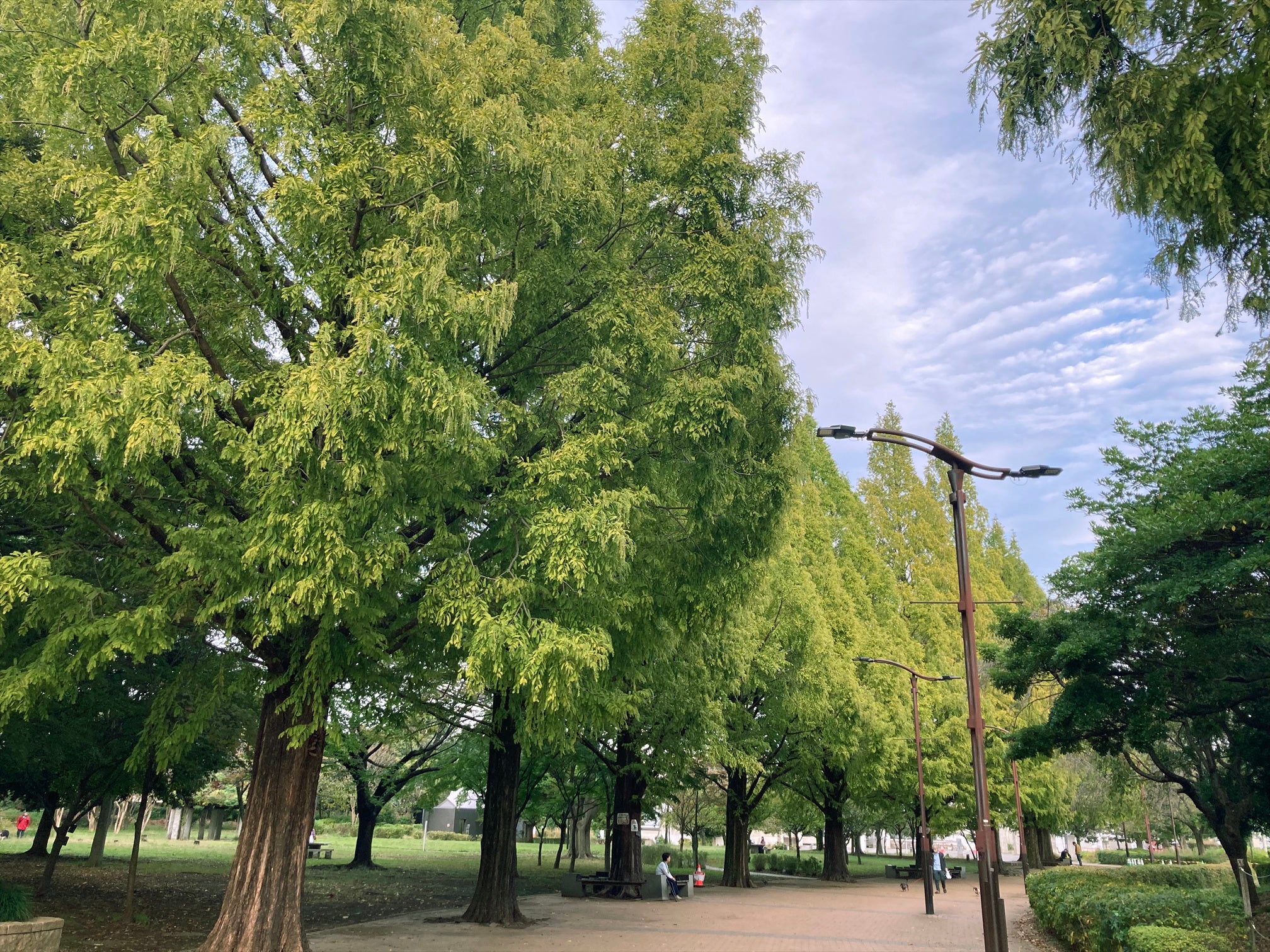 イベントのメイン会場となるのは、紅葉シーズンを迎えた巨木が12本立ち並ぶ「メタセコイア広場」。高さ約30mにもなる巨大な木々は、開園当初から50年以上にわたって地域を見守り続けてきた公園のシンボルです。