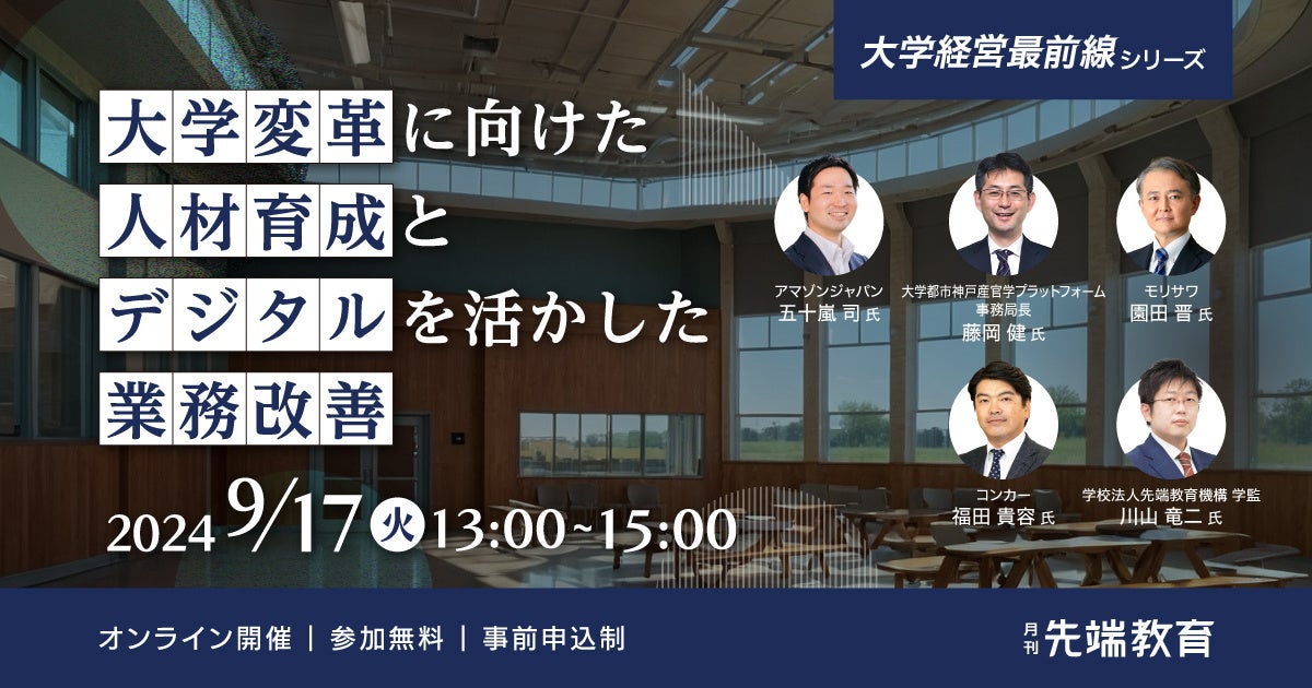 学校法人先端教育機構 (本部:東京都港区、理事長:東英弥)出版部が発行する教育専門誌「月刊先端教育」の主催で、大学経営をテーマに先進事例から今後のヒントを探るオンラインセミナーを9月17日(火)開催いたします。