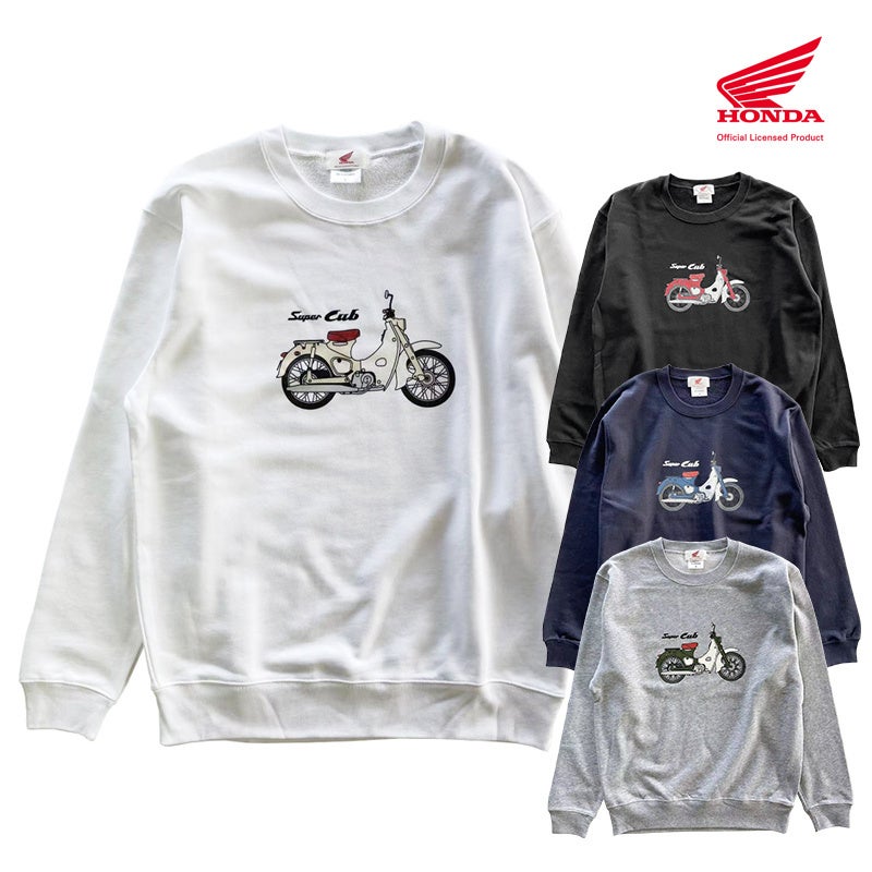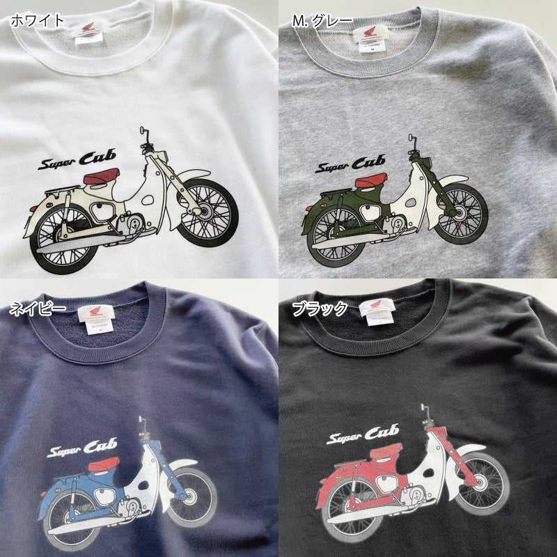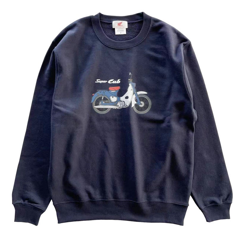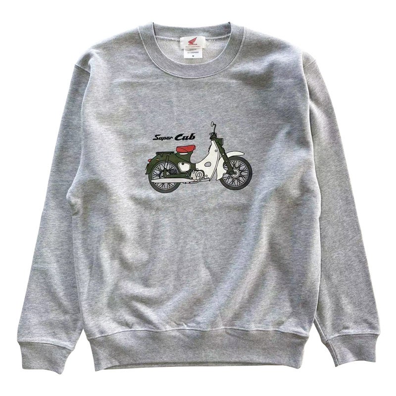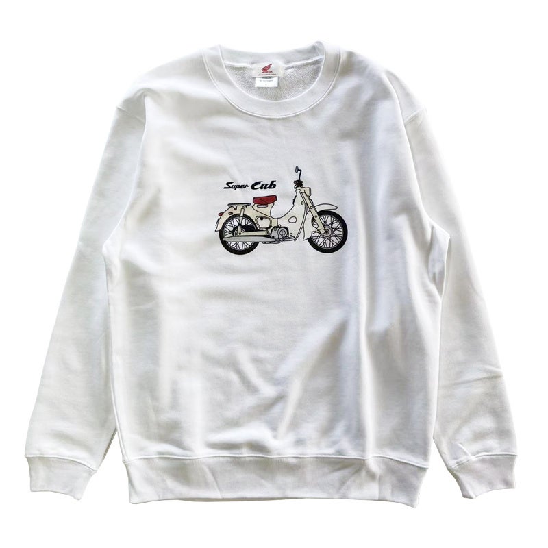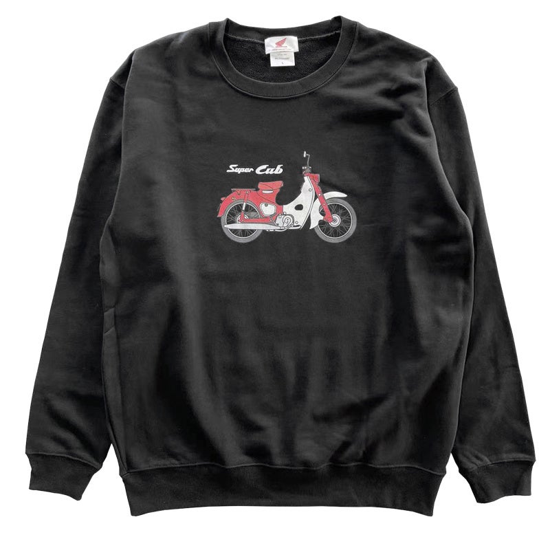 横向きのカラフルなスーパーカブが入ったスウェットが登場。