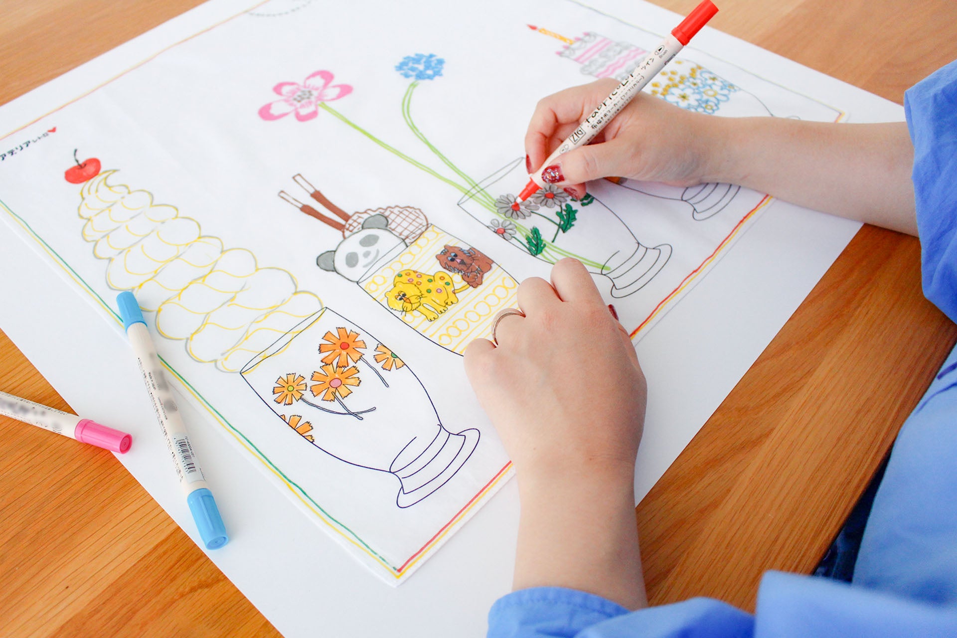 本イベントは、親子で自由にお絵描きを楽しみながら世界にひとつだけのオリジナルハンカチーフをお作りいただけます。お子さまとの大切な思い出や成長の記録としても残る心温まるワークショップです。