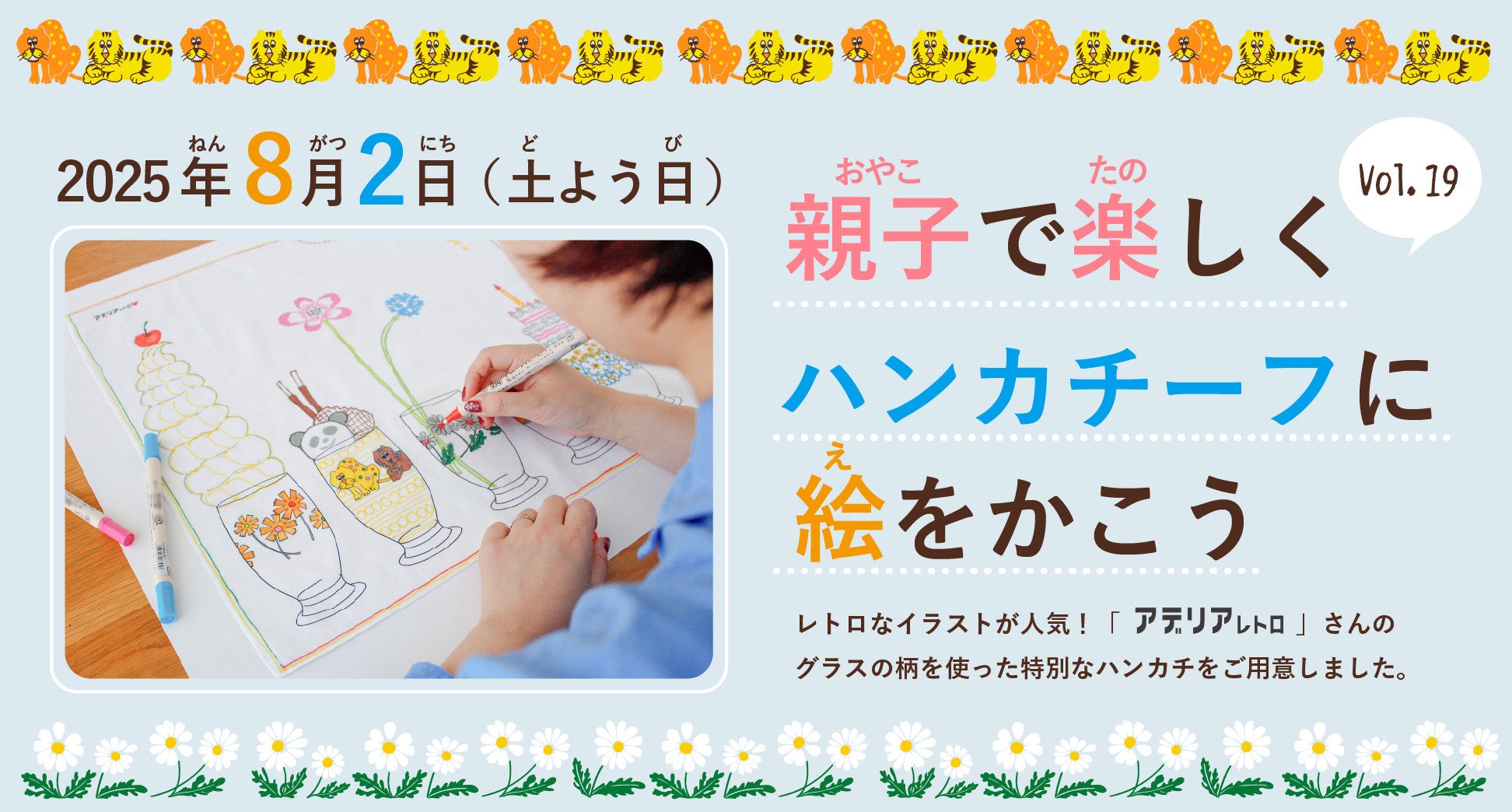 【夏休みキッズワークショップ】アデリアレトロとの初コラボ!『親子でたのしくハンカチーフに絵をかこうVol.19』8/2(土)開催