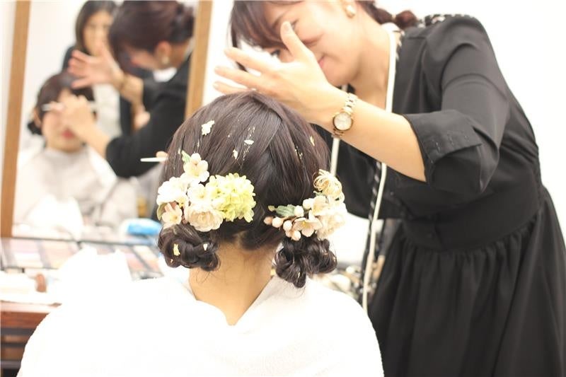 協力サロンとして参加している一般社団法人BEAUDOUBLE -ビューダブル- を通して、ukaはヘアメイク、株式会社やまとは着物と着付けを担当。当日は5名が参加し、ともにuka 広尾店所属の矢澤(@yazawa.yuri)がメイクを、吉田(@asaka_hairarrange)がヘアセットをさせていただきました。